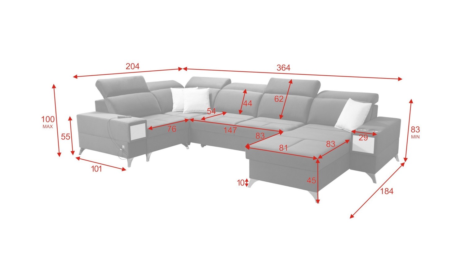 - Szerokość: 204x364x184cm