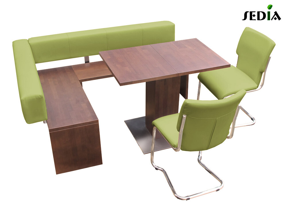 Mocca to prosty i bardzo funkcjonalny narożnik kuchenny, który zaspokoi codzienne potrzeby Twoje i Twojej rodziny. Prosta drewniana konstrukcja i miękkie tapicerowane oparcie zapewnią wygodę, nie zajmując znacznej przestrzeni. To idealne rozwiązanie do małego stolika w aneksie jadalnym.