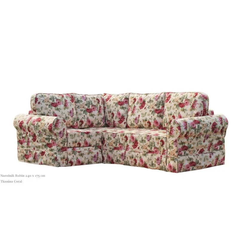 Narożnik w kwiaty Rubin 240 x 175 cm to idealny wybór dla osób ceniących sobie komfort i styl. Wyposażony w siedzisko z wysokiej jakości sprężynami oraz pianką tapicerską, zapewnia wyjątkową wygodę użytkowania. Oparcie wypełnione kulką silikonową mieszaną z frytką piankową gwarantuje optymalne podparcie pleców. Klienci mają możliwość otrzymania darmowych próbek tkanin obiciowych, co ułatwia wybór odpowiedniego materiału. W ofercie znajduje się szeroki wybór materiałów tapicerskich, w tym tkaniny plamoodporne, w kwiaty, lniane, skóry oraz ekoskóry.