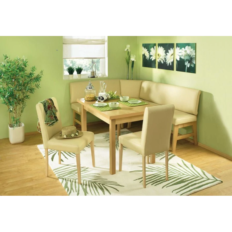 Funkcjonalny i elegancki narożnik do kuchni wykonany z drewna bukowego i ekoskóry.