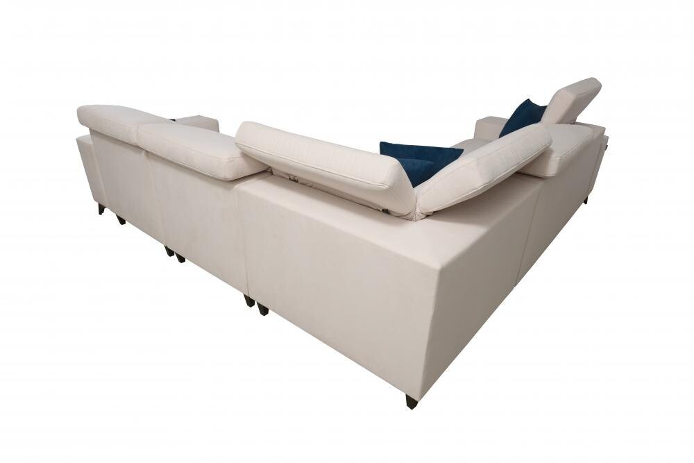 Stelaż narożnika wykonany jest z drewna oraz płyty, co zapewnia trwałość i solidność. Regulowane zagłówki dostosowują się do Twoich potrzeb, a wygodna funkcja spania oraz pojemniki na pościel sprawiają, że jest to mebel niezwykle praktyczny. Istnieje możliwość wykonania powierzchni spania w tkaninie takiej, jak na całym narożniku za dopłatą +120 zł.