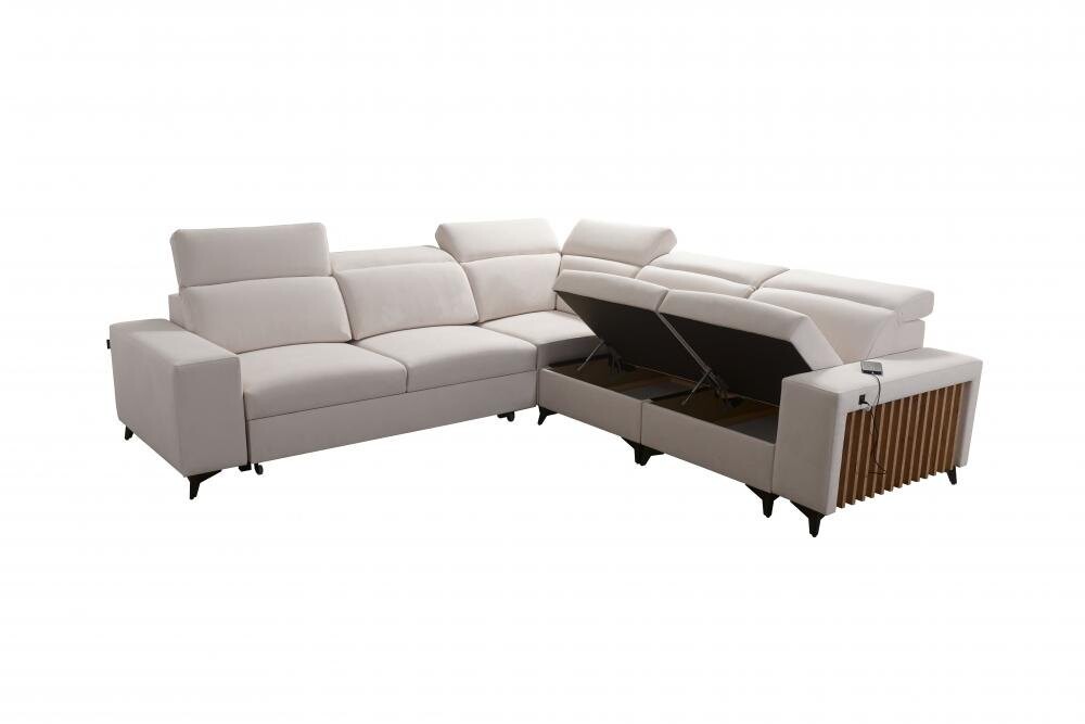 Rozkładany narożnik Niobe III 283x283 cm z ozdobnymi lamelami - z funkcją spania i dwoma pojemnikami