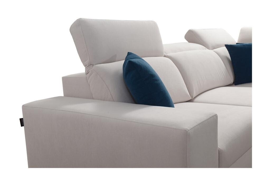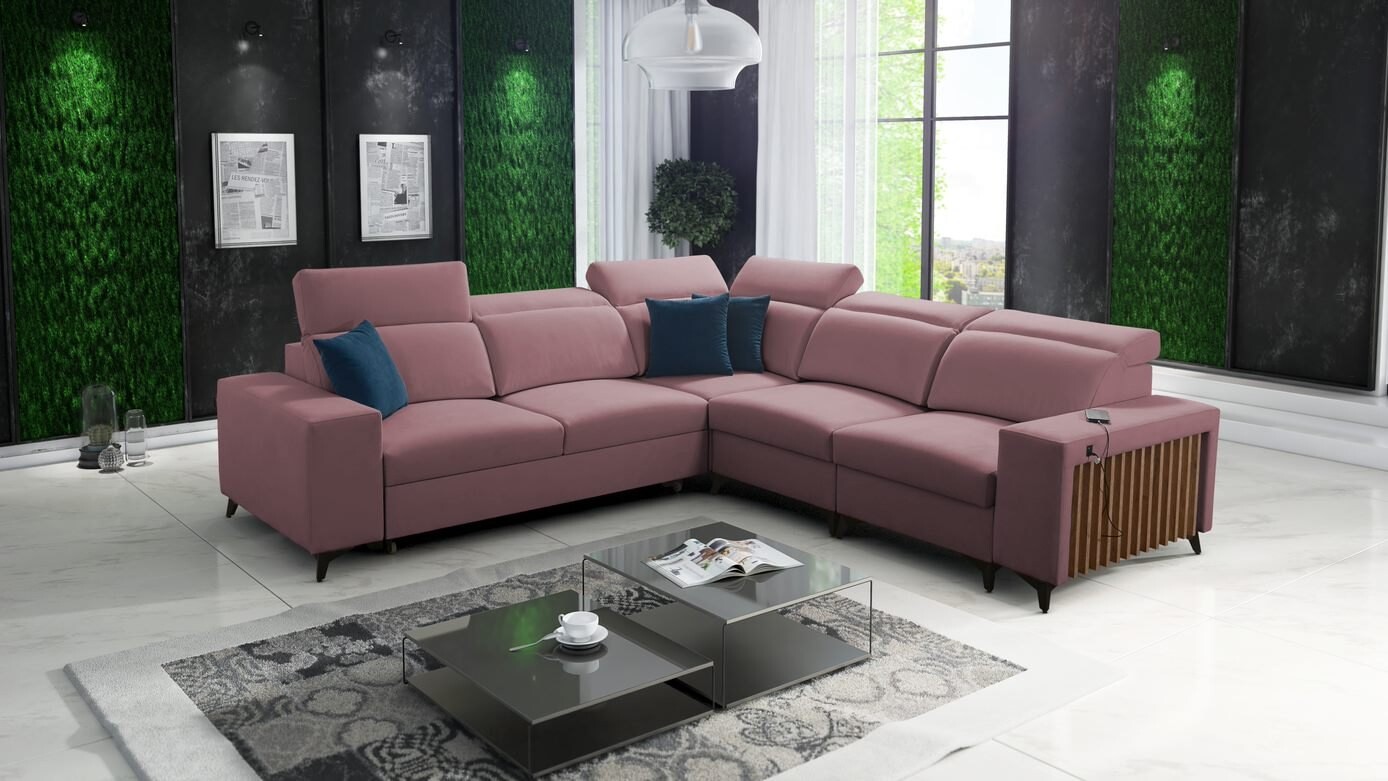 Narożnik Niobe III to synonim komfortu i stylu. Dostępny w wielu kolorach plamoodpornych tkanin o różnych strukturach, w tym welurach i plecionkach, pozwala na stworzenie wnętrza pełnego ciepła i elegancji. Siedzisko wykonane ze sprężyn falistych oraz pianki T30 o grubości 10 cm gwarantuje wygodę, a opcjonalne wypełnienie z pianki HR 35 podnosi komfort użytkowania.