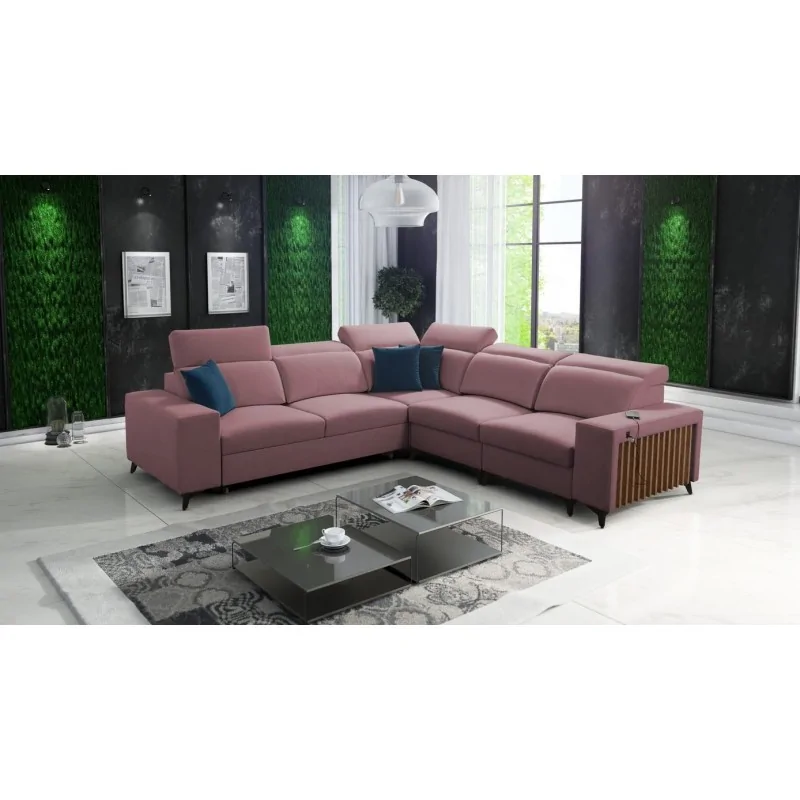 - Narożnik dostępny w wielu kolorach plamoodpornych tkanin o różnych strukturach, m.in welurach i plecionkach