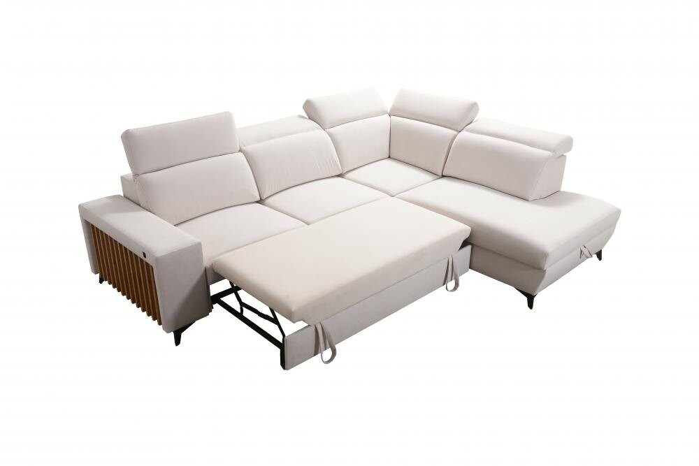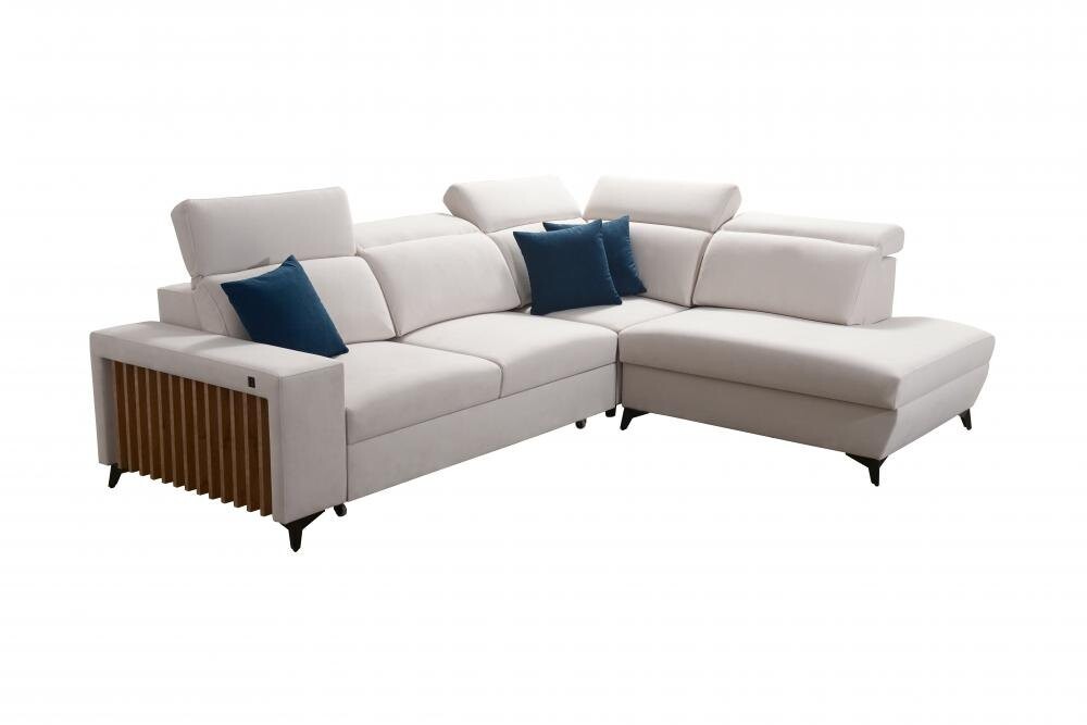 Narożnik Niobe VII to elegancki i nowoczesny mebel, który idealnie sprawdzi się w każdym współczesnym wnętrzu. Wyposażony w funkcję spania oraz pojemnik na pościel, łączy w sobie funkcjonalność i styl. Dzięki szerokiemu wyborowi tkanin plamoodpornych o różnych strukturach, narożnik ten można łatwo dopasować do indywidualnych potrzeb i gustów.