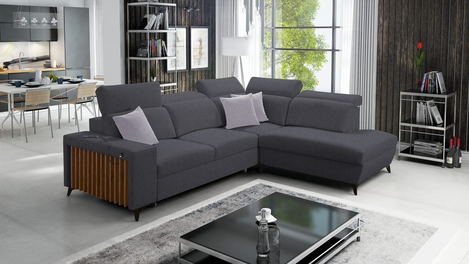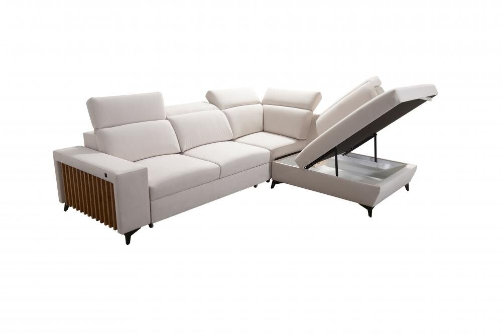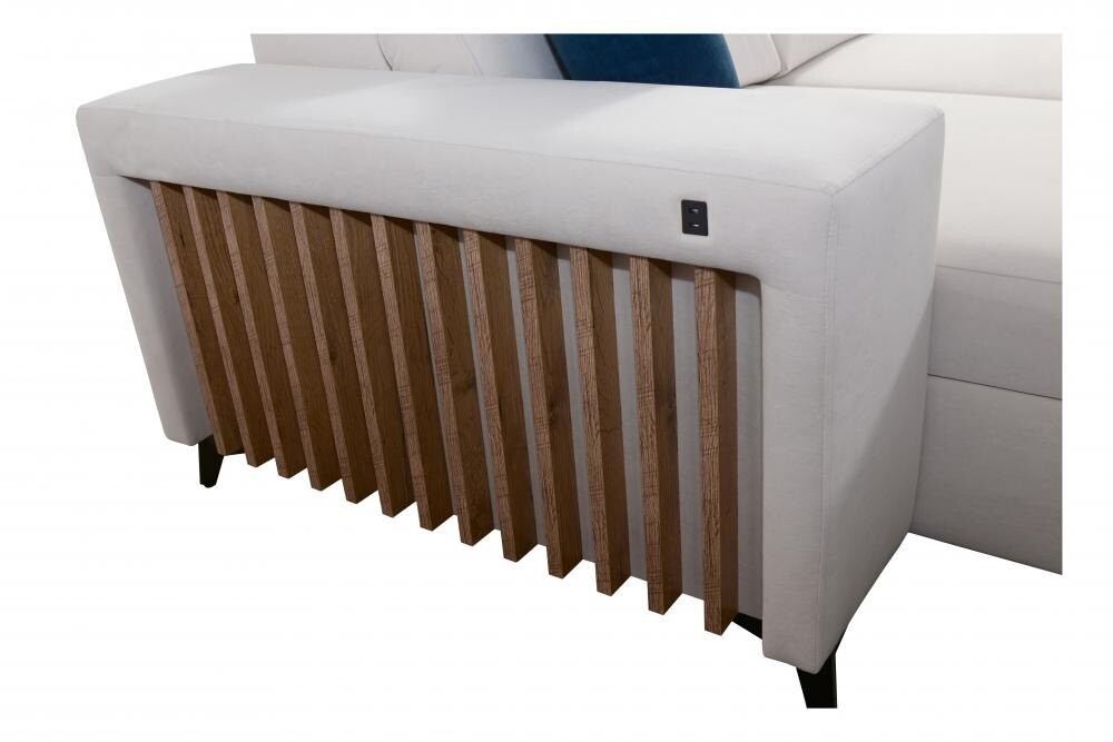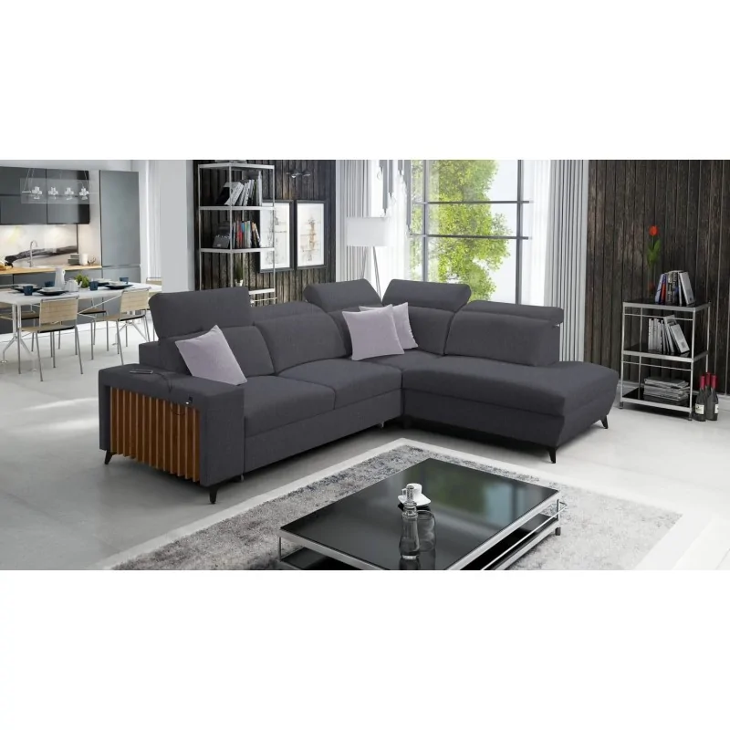Nowoczesny narożnik Niobe VII z lamelami 283x224 cm - rozkładany do spania i z pojemnikiem na pościel