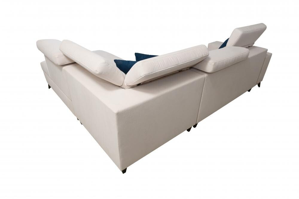 Stelaż narożnika wykonany jest z drewna oraz płyty, co gwarantuje jego solidność i długowieczność. Regulowane zagłówki pozwalają na dostosowanie pozycji siedzącej do indywidualnych potrzeb, a funkcja spania oraz pojemnik na pościel sprawiają, że narożnik jest niezwykle praktyczny. Dodatkowo, istnieje możliwość wykonania powierzchni spania w tej samej tkaninie co reszta narożnika za dopłatą +120 zł.