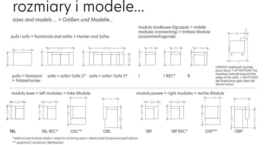 - istnieje możliwość wykonania narożnika Lungo z modułów o innych wymiarach