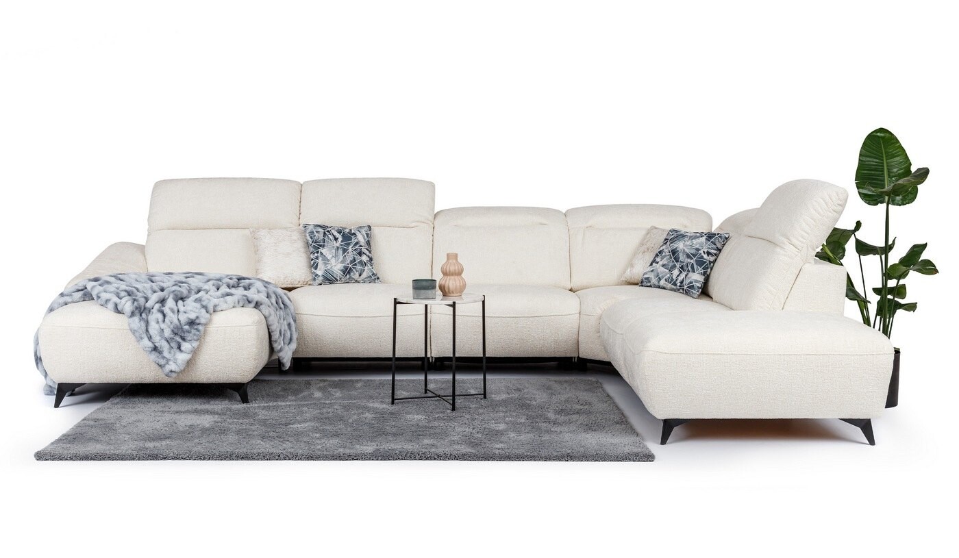 Narożnik Lungo to wyjątkowo przestronny i nowoczesny mebel, który z pewnością stanie się centralnym punktem każdego salonu. Jasna tkanina narożnika wprowadza do wnętrza elegancję i lekkość, podczas gdy czarne nóżki dodają mu nowoczesnego charakteru. Modułowy układ zapewnia wszechstronność, umożliwiając dostosowanie narożnika do indywidualnych potrzeb i układu pomieszczenia. Subtelne przeszycia podkreślają wysoką jakość wykonania i nowoczesny design.