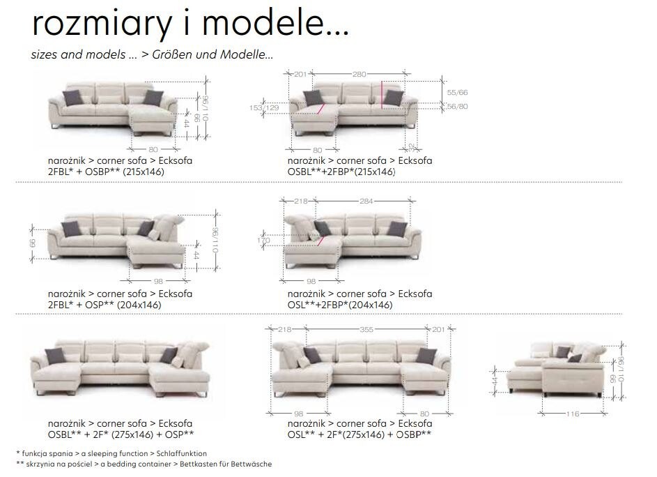 - narożnik posiada wysuwaną funkcję spania i pojemnik na pościel