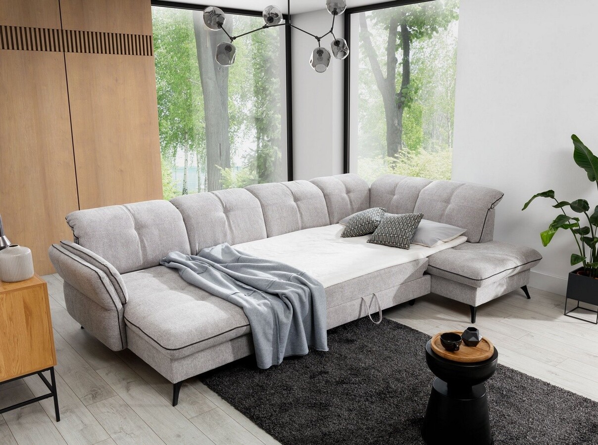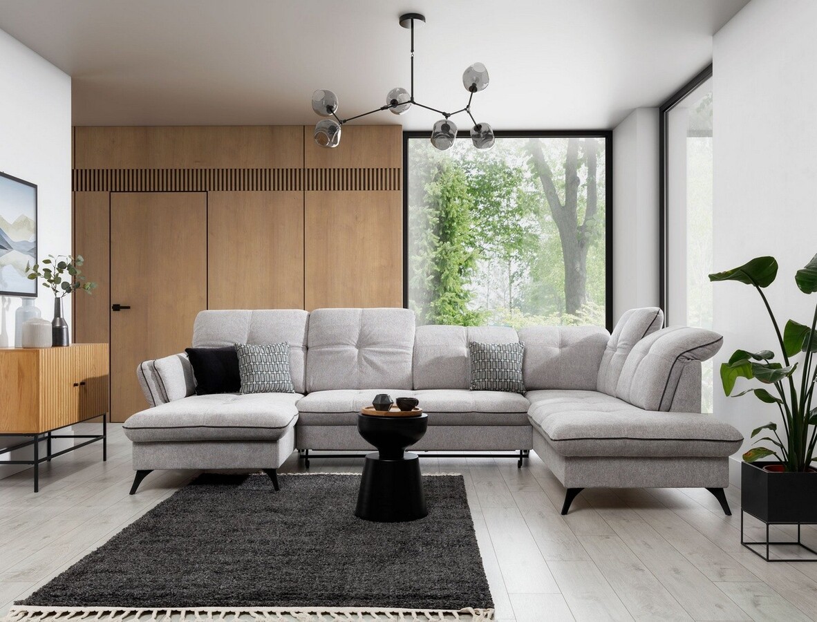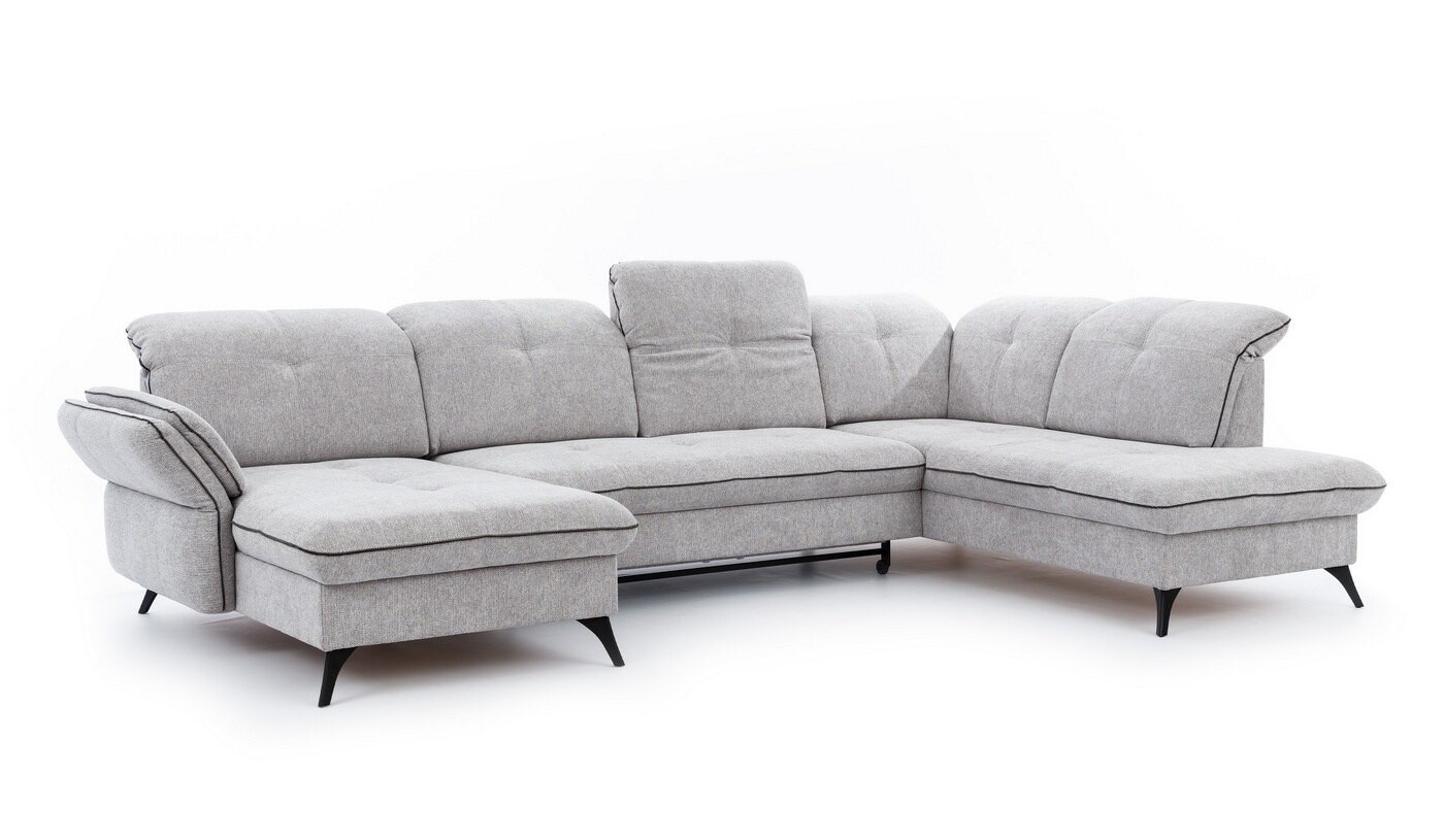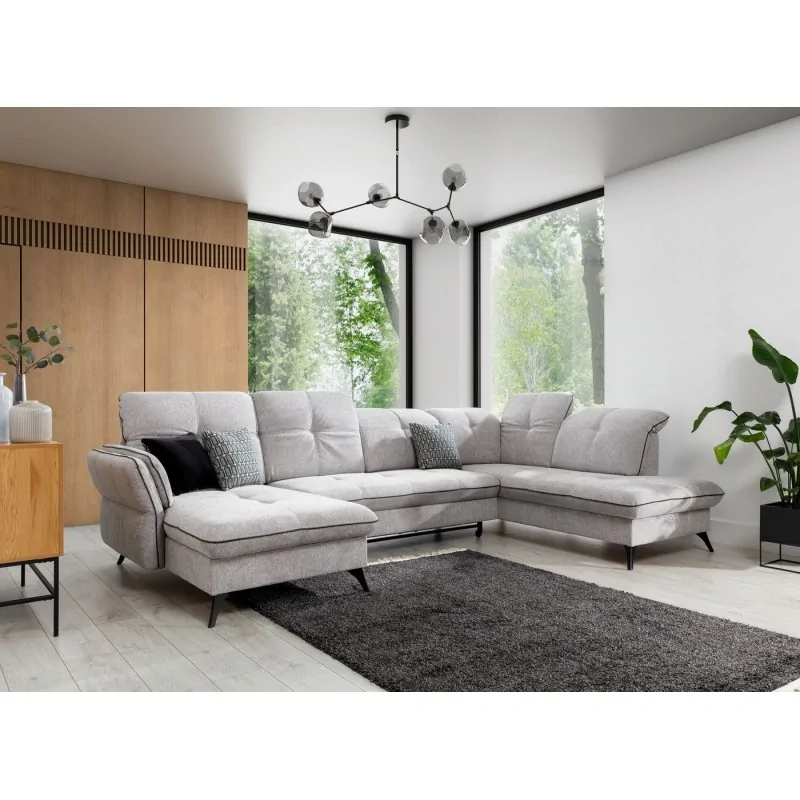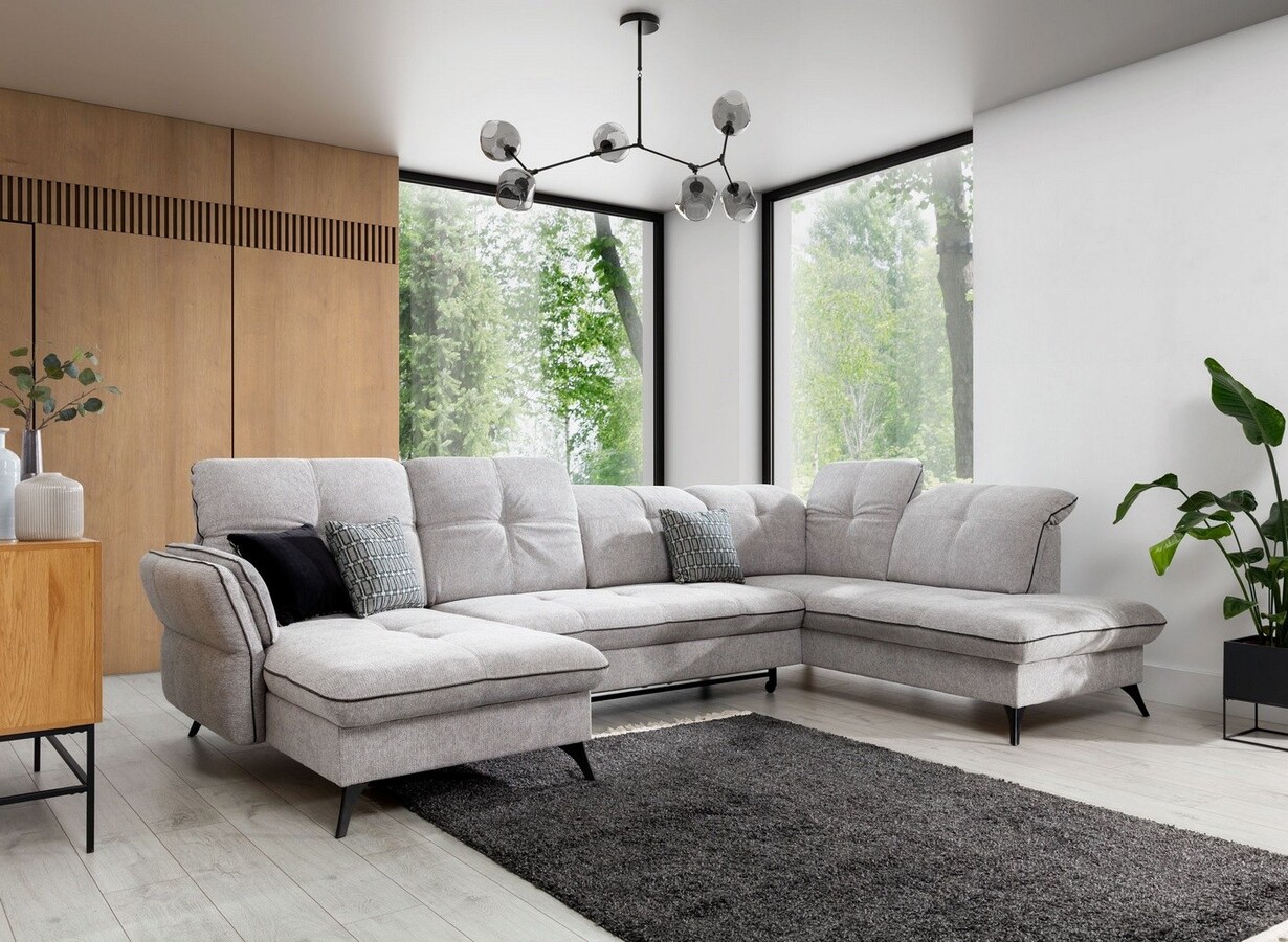 Duży narożnik Preston o wymiarach 216x321/335x169 cm to doskonałe rozwiązanie dla przestronnych wnętrz, które łączy nowoczesny design z wyjątkową funkcjonalnością. Jego jasnoszara tapicerka nadaje wnętrzu elegancji i świeżości, a subtelne pikowania podkreślają nowoczesny charakter mebla. Regulowane zagłówki i podłokietniki zapewniają wysoki komfort użytkowania, umożliwiając dostosowanie narożnika do indywidualnych potrzeb. Preston to idealny wybór dla tych, którzy cenią sobie zarówno styl, jak i wygodę.