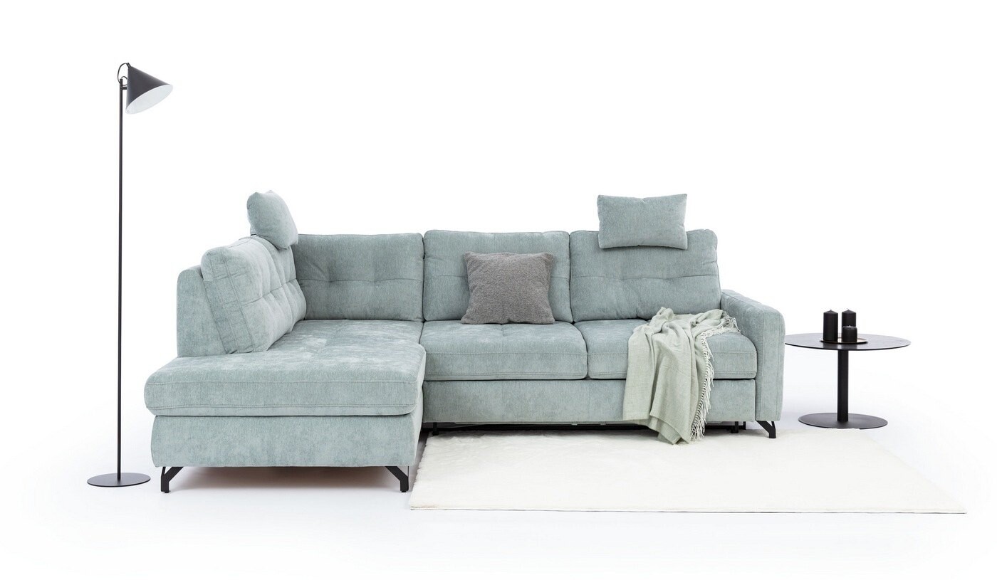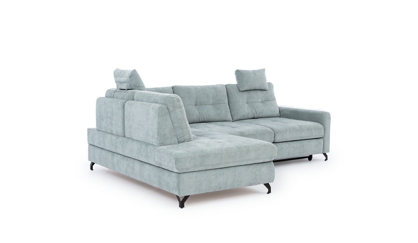 Narożnik London to przede wszystkim funkcjonalność i komfort. Wyposażony w wysuwaną funkcję spania, narożnik łatwo przekształca się w wygodne łóżko o powierzchni 206x143 cm, idealne na noclegi dla gości. Pojemnik na pościel umożliwia przechowywanie kołder i poduszek, co jest szczególnie praktyczne w mniejszych przestrzeniach. Przesuwne oparcia oraz mobilny zagłówek (w cenie narożnika) zapewniają maksymalny komfort i wszechstronność, pozwalając na dostosowanie narożnika do różnych sytuacji i potrzeb.