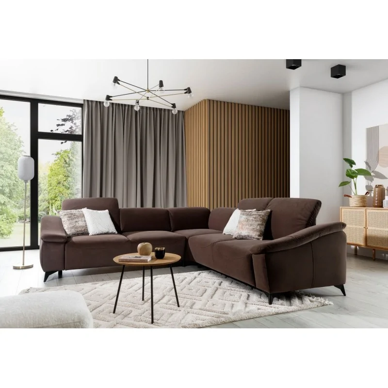 Narożnik Paros 270x270 cm to elegancki mebel o przemyślanym designie, który łączy funkcjonalność z wygodą. Jego regulowane zagłówki zapewniają optymalne podparcie dla głowy, dostosowując się do indywidualnych potrzeb użytkowników. Wysokość całkowita narożnika wynosi od 80 do 96 cm, co pozwala na komfortowe siedzenie i relaks. Głębokość całkowita 98 cm i wysokość siedziska 44 cm zapewniają wygodne miejsce do siedzenia.