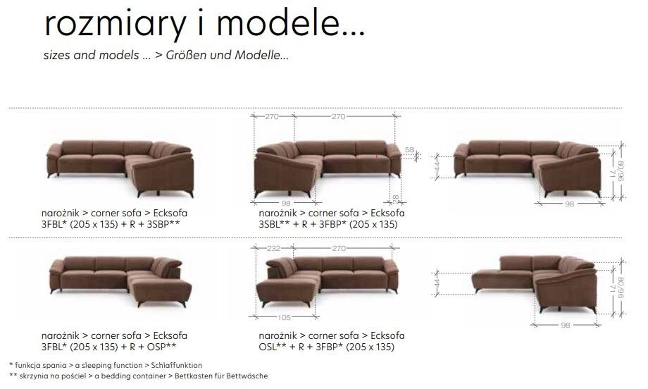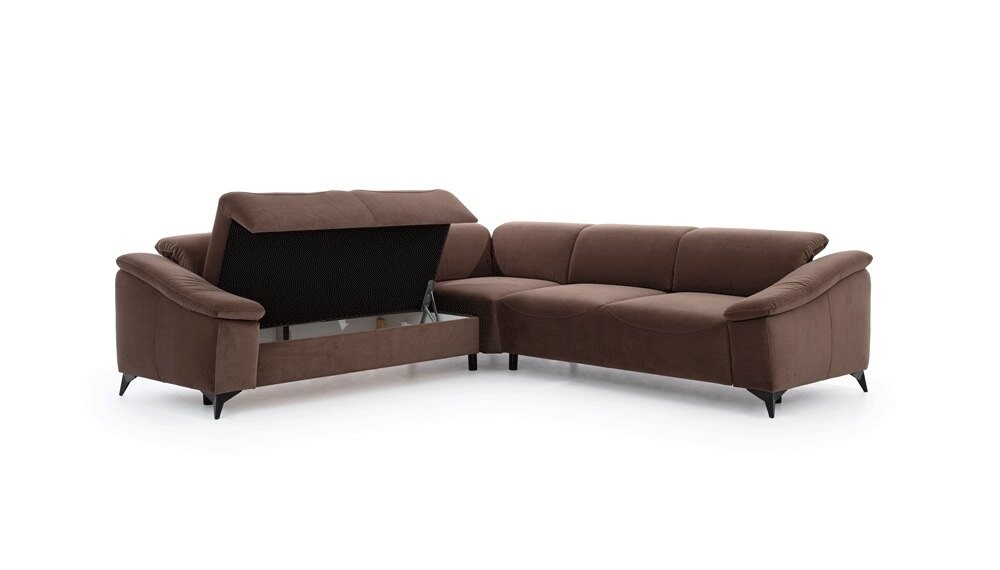 Narożnik Paros 270x270 cm z regulowanymi zagłówkami - z funkcją spania i pojemnikiem