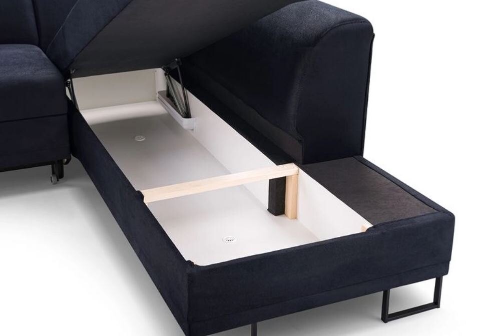 Narożnik rozkładany Asteria został zaprojektowany z myślą o funkcjonalności. Oferuje przestronną powierzchnię spania o wymiarach 222 x 130 cm, co sprawia, że jest praktycznym rozwiązaniem dla gości nocujących lub relaksujących się w ciągu dnia. Dodatkowym atutem jest pojemnik na pościel, który pozwala na efektywne wykorzystanie przestrzeni, idealne dla tych, którzy cenią sobie porządek i organizację w domu.