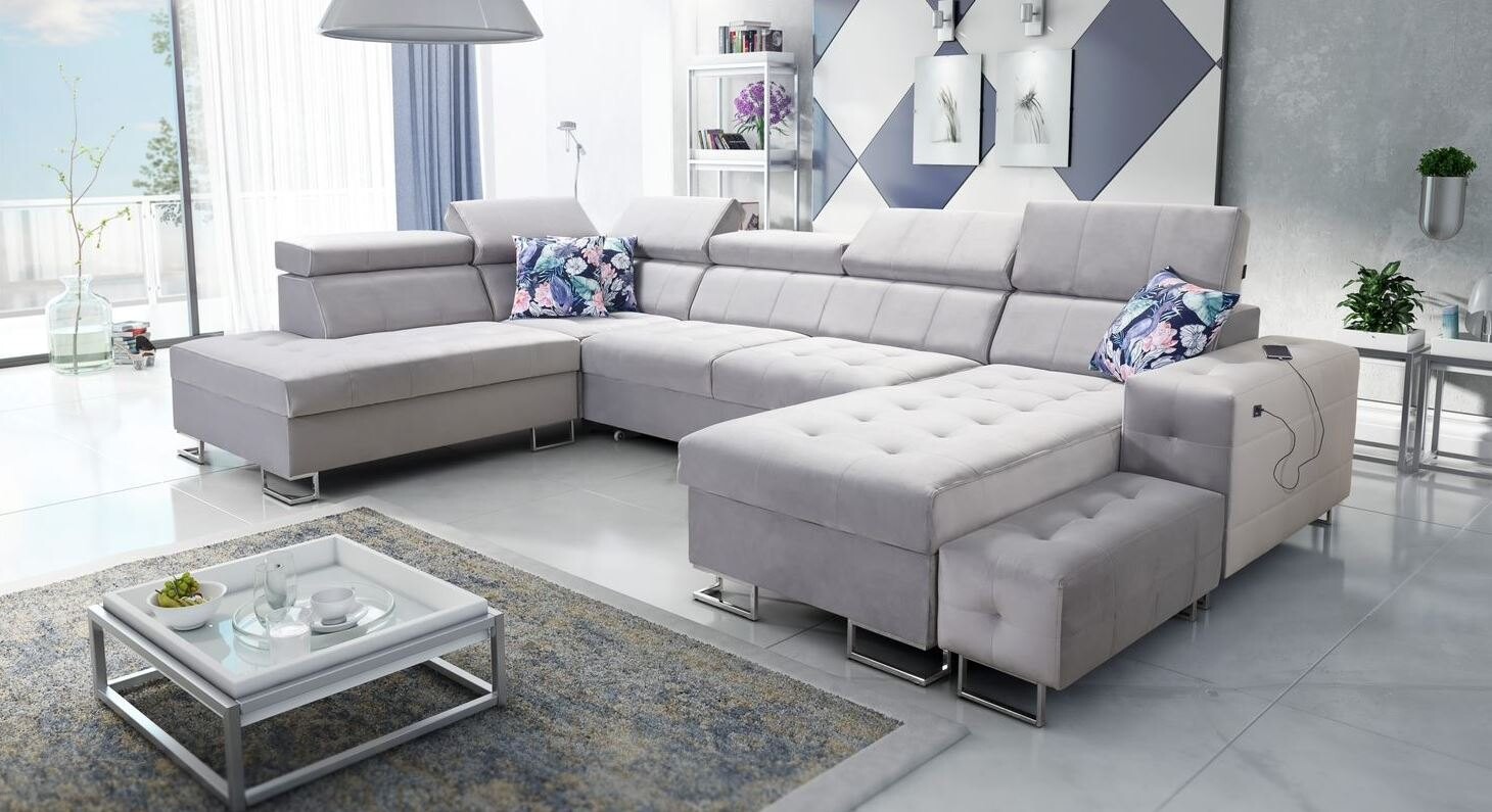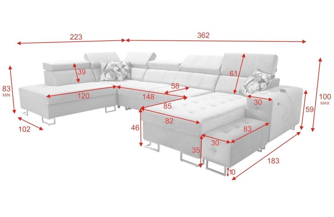 Przestronny narożnik Vertizo VI 223x362x183 cm - z funkcją spania, z 2 pojemnikami