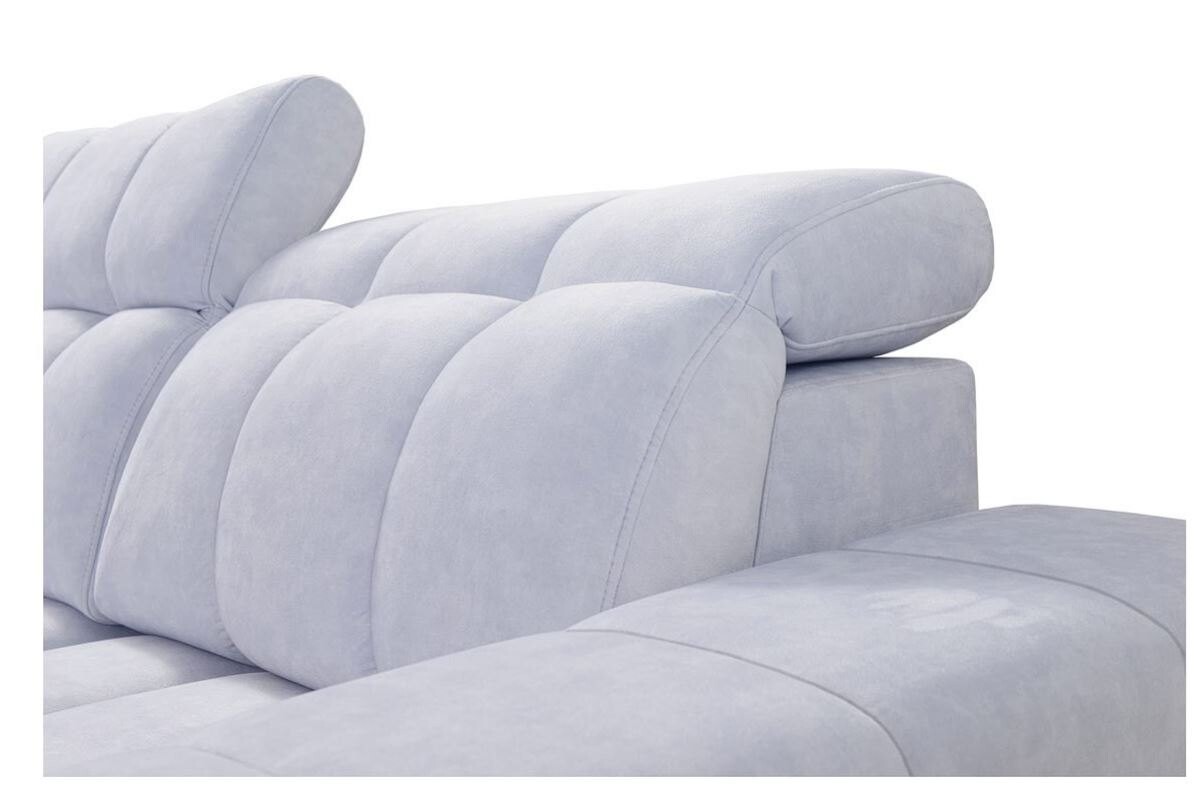 Narożnik Nevada VIII 285x364x179 cm to imponujący mebel, który stanowi idealne połączenie nowoczesnego designu i funkcjonalności. Precyzyjnie wykonane przeszycia na tapicerowanych powierzchniach dodają narożnikowi elegancji, a regulowane zagłówki umożliwiają dostosowanie pozycji siedzenia do indywidualnych preferencji, zapewniając wyjątkowy komfort. Solidna konstrukcja stelaża, zbudowana z drewna i płyty, gwarantuje stabilność i wytrzymałość, co czyni go inwestycją na lata. Chromowane lub czarne matowe nóżki doskonale wpisują się w nowoczesne aranżacje wnętrz, podkreślając stylowy charakter mebla.