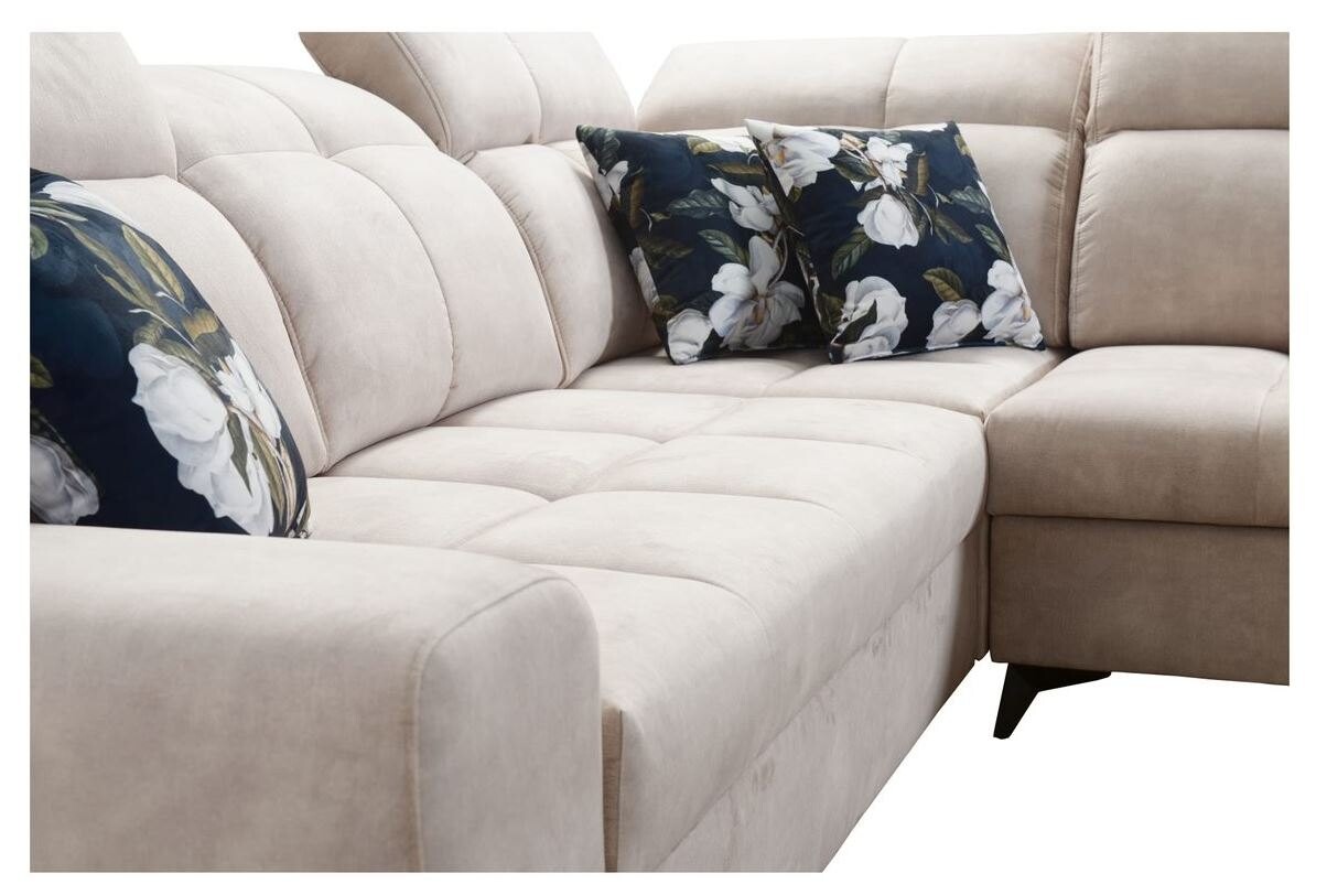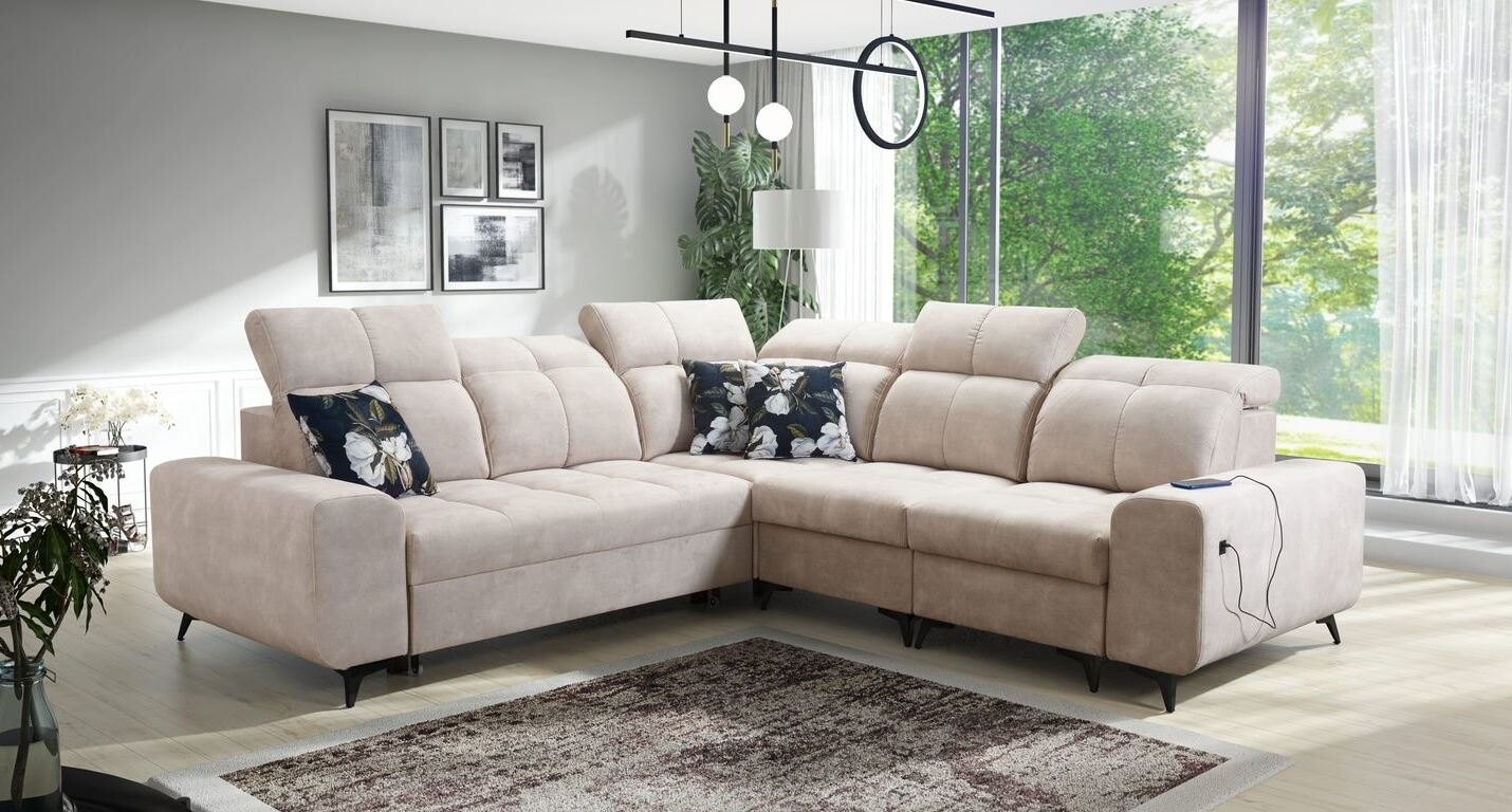 - Narożnik dostępny w wielu kolorach plamoodpornych tkanin o różnych strukturach, m.in welurach i plecionkach
