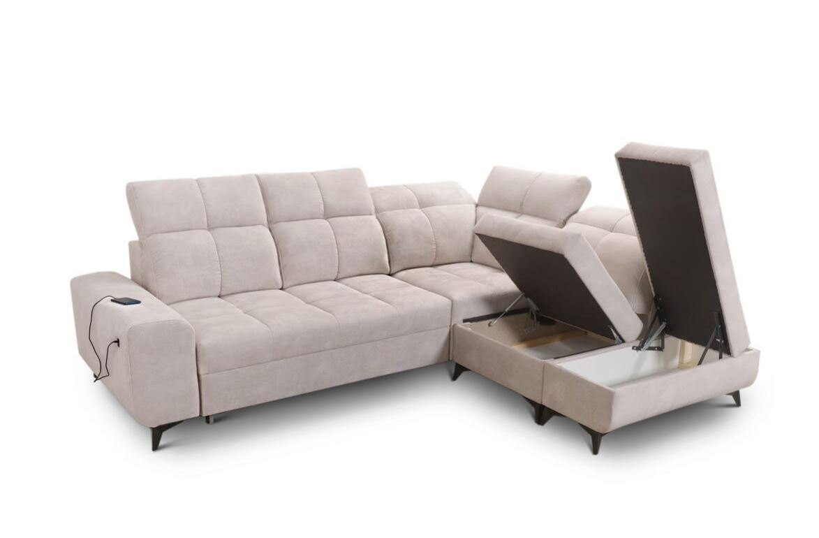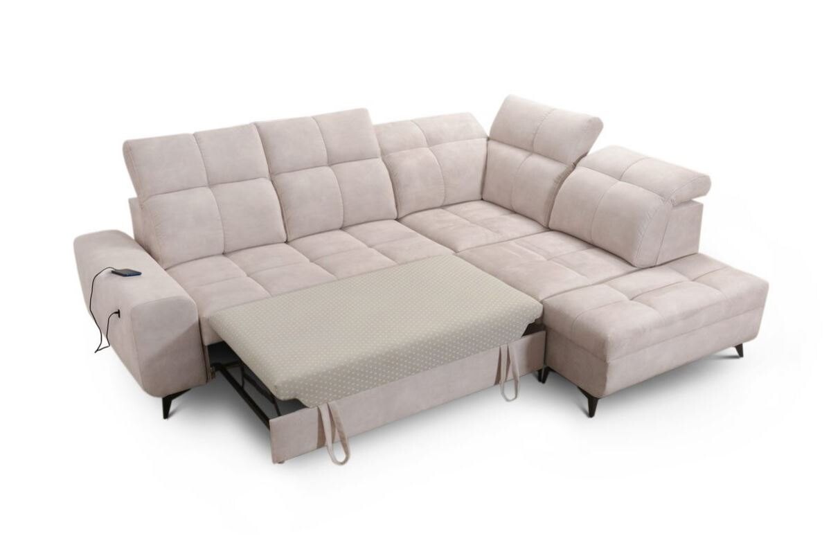 Narożnik pikowany Ligier VII 266x212 cm - z funkcją spania, z pojemnikami