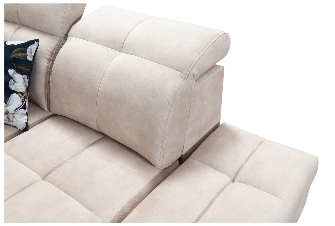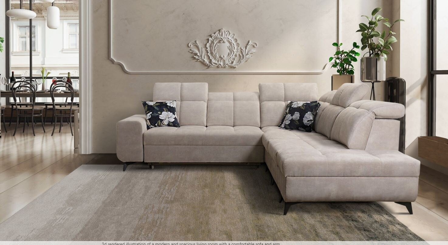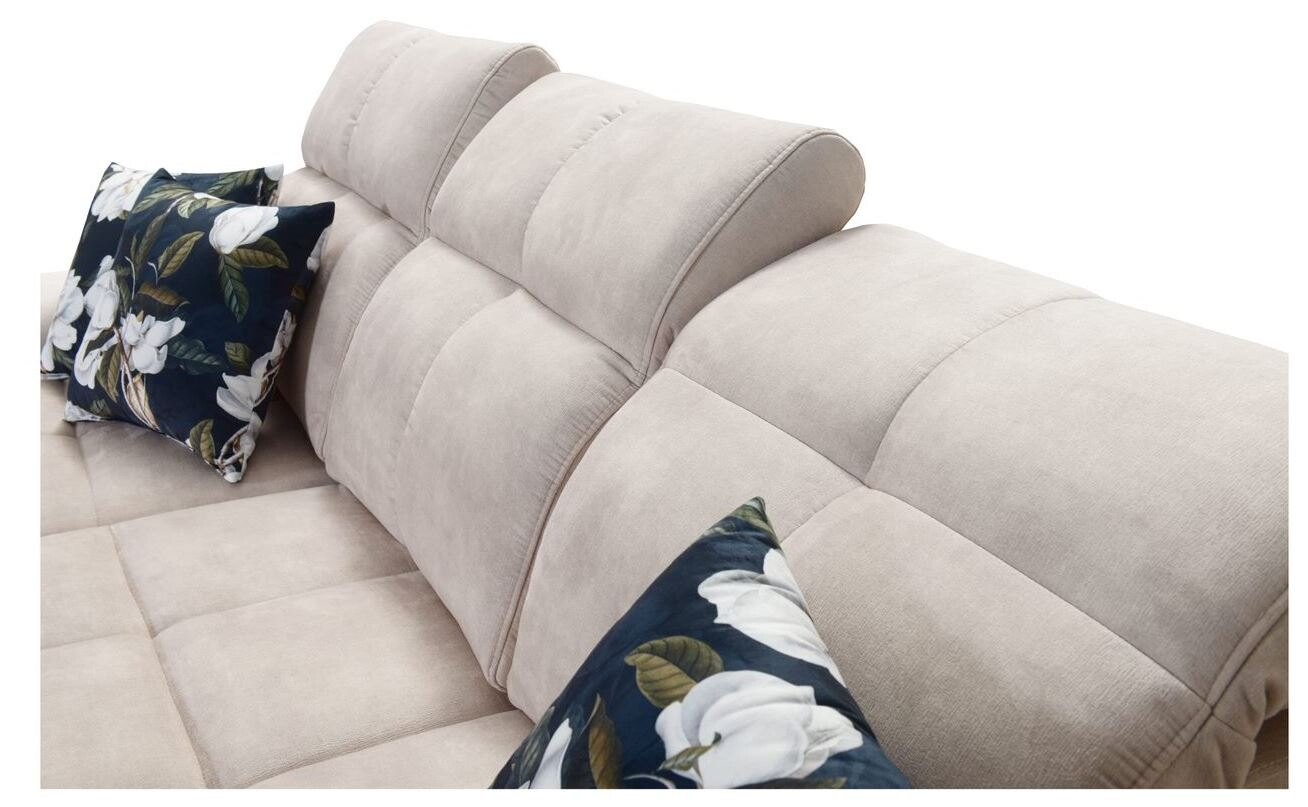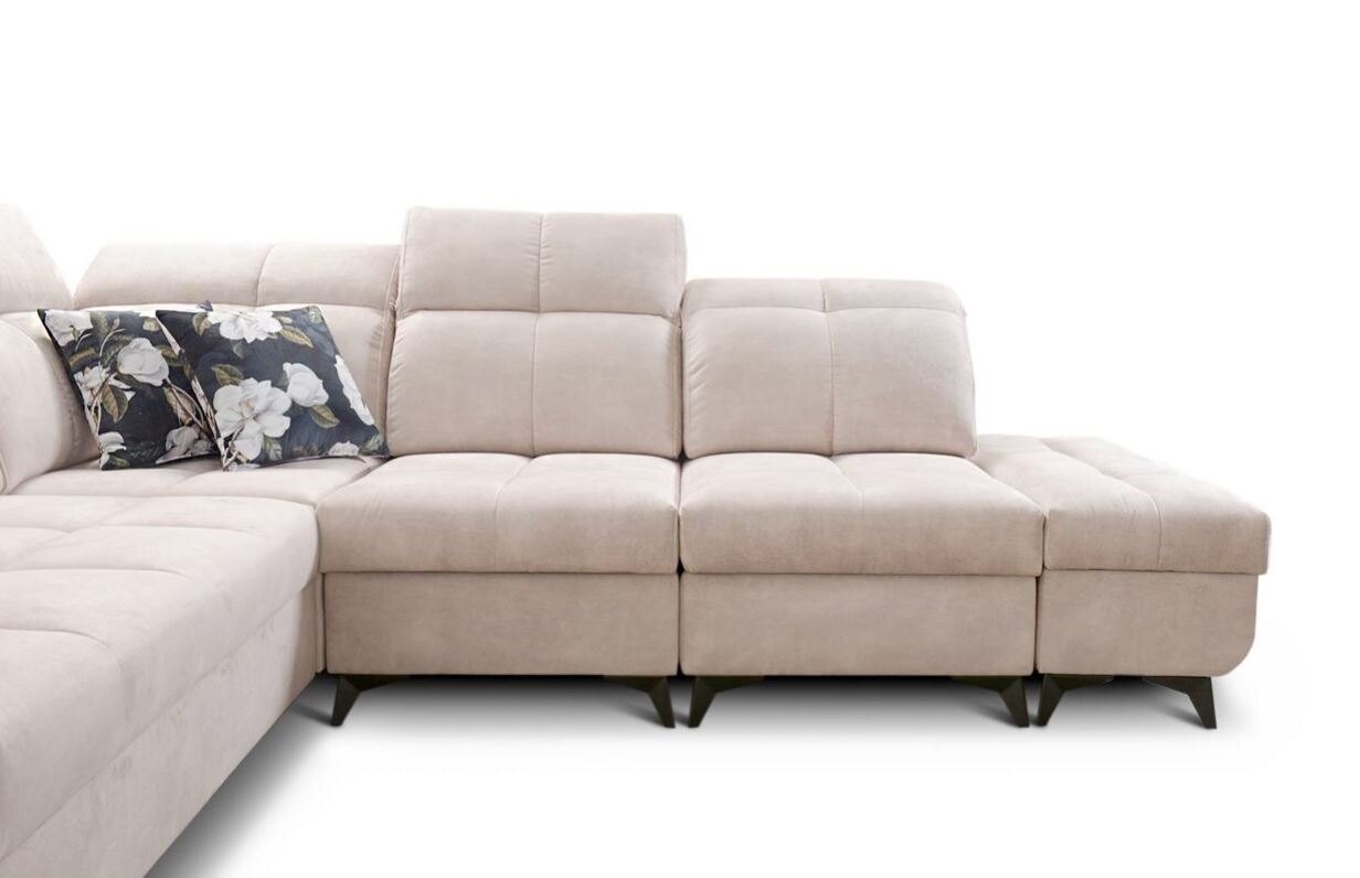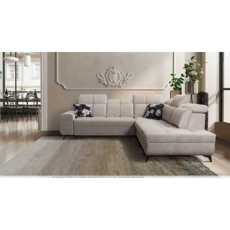 Narożnik Ligier IX 266x279 cm to wyjątkowy mebel, który łączy elegancję z funkcjonalnością. Jego elegancko pikowane siedzisko i oparcie, wykonane z wysokiej jakości tkaniny, dodają wnętrzu nowoczesnego charakteru. Regulowane zagłówki zapewniają doskonałe podparcie dla głowy i szyi, co zwiększa komfort użytkowania. Narożnik dostępny jest w wielu kolorach plamoodpornych tkanin, w tym welurach i plecionkach, co umożliwia dopasowanie go do różnych aranżacji wnętrz.