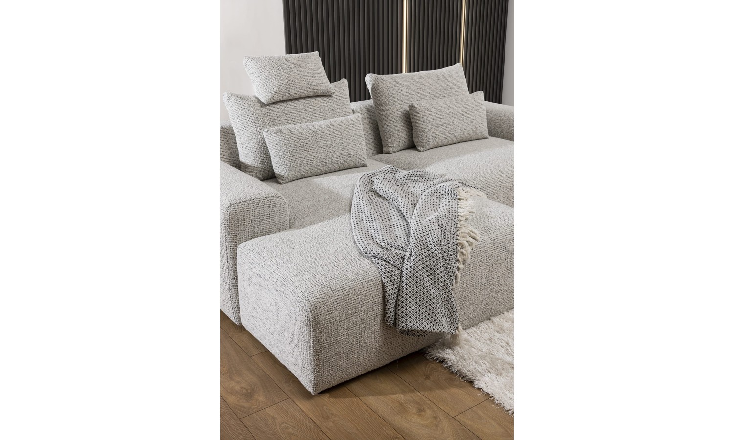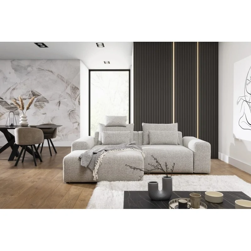 Najważniejsze cechy narożnika Rodos S Mini to jego modułowa konstrukcja, umożliwiająca dowolne konfiguracje według potrzeb użytkownika. Mebel został wykonany na sprężynach falistych oraz piance T30, co zapewnia średnio miękkie siedzisko, idealne do codziennego użytku. Poduszki oparciowe wypełnione granulatem silikonowym dodają komfortu, a nóżki plastikowe w czarnym kolorze o wysokości 2,5 cm nadają narożnikowi nowoczesny wygląd. Narożnik nie posiada funkcji spania ani pojemnika, co podkreśla jego minimalistyczny design.