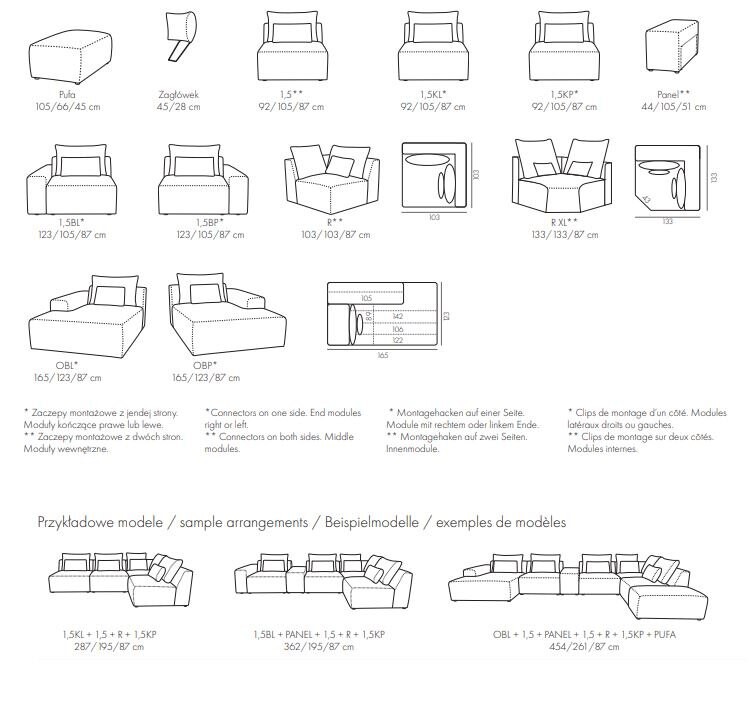 - w kolekcji Rodos dostępne są również modułowe narożniki, sofy, fotele, pufy itp.