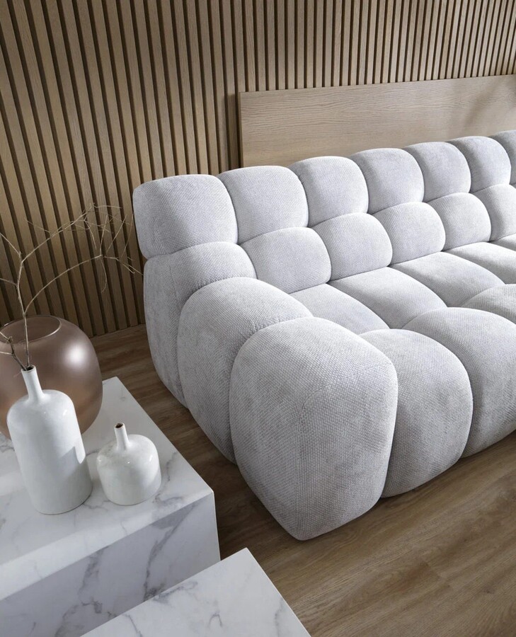 Jedną z głównych zalet narożnika Sempre jest elektrycznie regulowana głębokość siedziska, która umożliwia dostosowanie go do indywidualnych potrzeb użytkowników. Pianka wysokoelastyczna HR zastosowana w siedzisku zapewnia wyjątkową wygodę oraz trwałość. Konstrukcja oparta na sprężynach falistych dodatkowo zwiększa komfort siedzenia, a także przedłuża żywotność mebla. Dzięki tym rozwiązaniom, narożnik Sempre jest idealnym miejscem do codziennego relaksu.