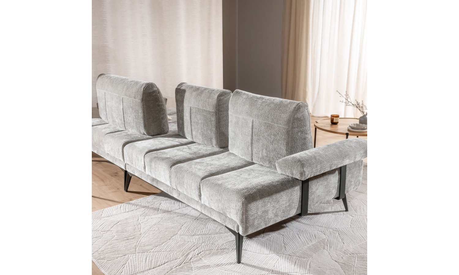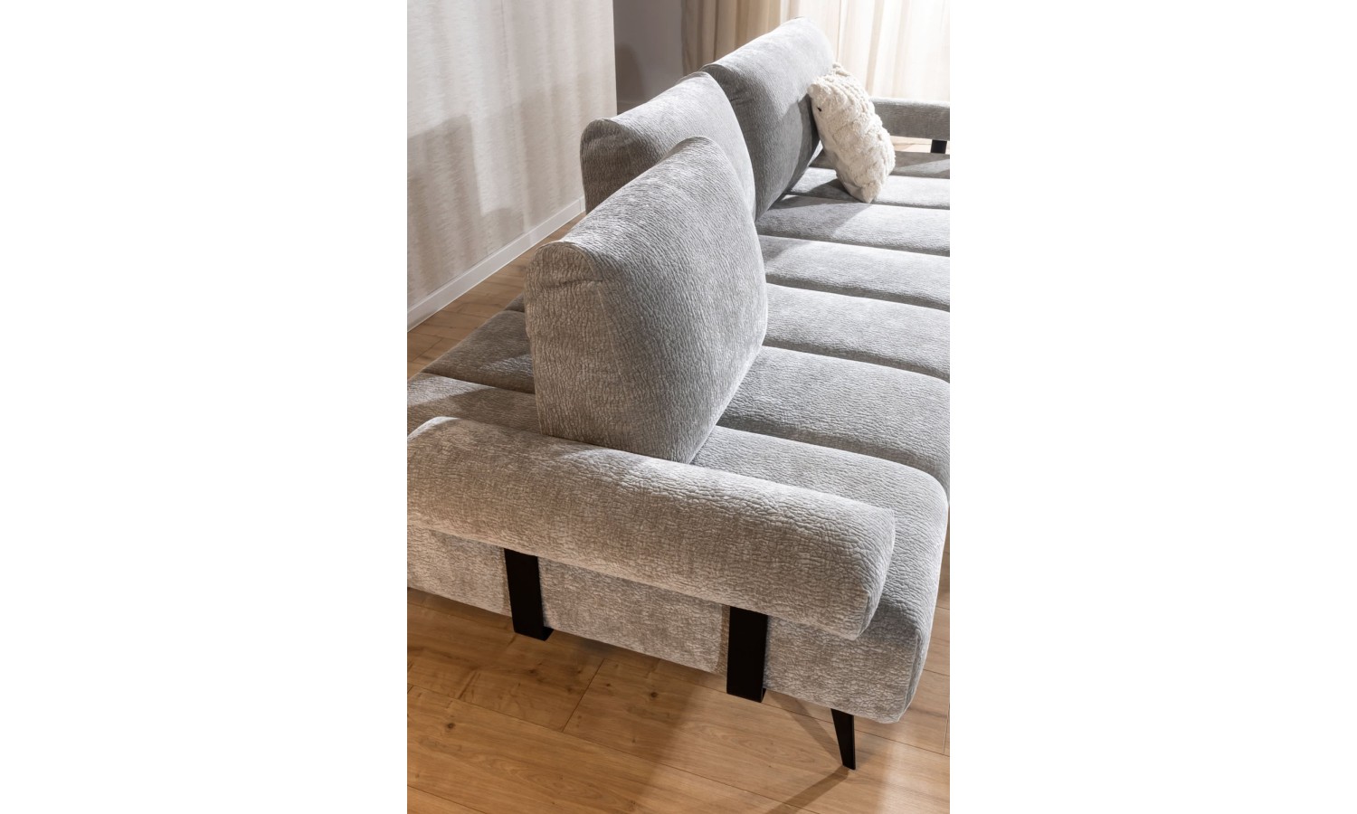 Narożnik Ares został zaprojektowany z myślą o funkcjonalności i estetyce. Przesuwne oparcia regulujące głębokość siedziska pozwalają na dopasowanie mebla do indywidualnych potrzeb użytkowników, zapewniając maksymalny komfort. Wypełnienie narożnika składa się ze sprężyn falistych i pianki PU, co gwarantuje wygodę i trwałość na lata. Narożnik nie posiada funkcji spania ani pojemnika na pościel, co czyni go idealnym miejscem do relaksu i codziennego użytkowania.