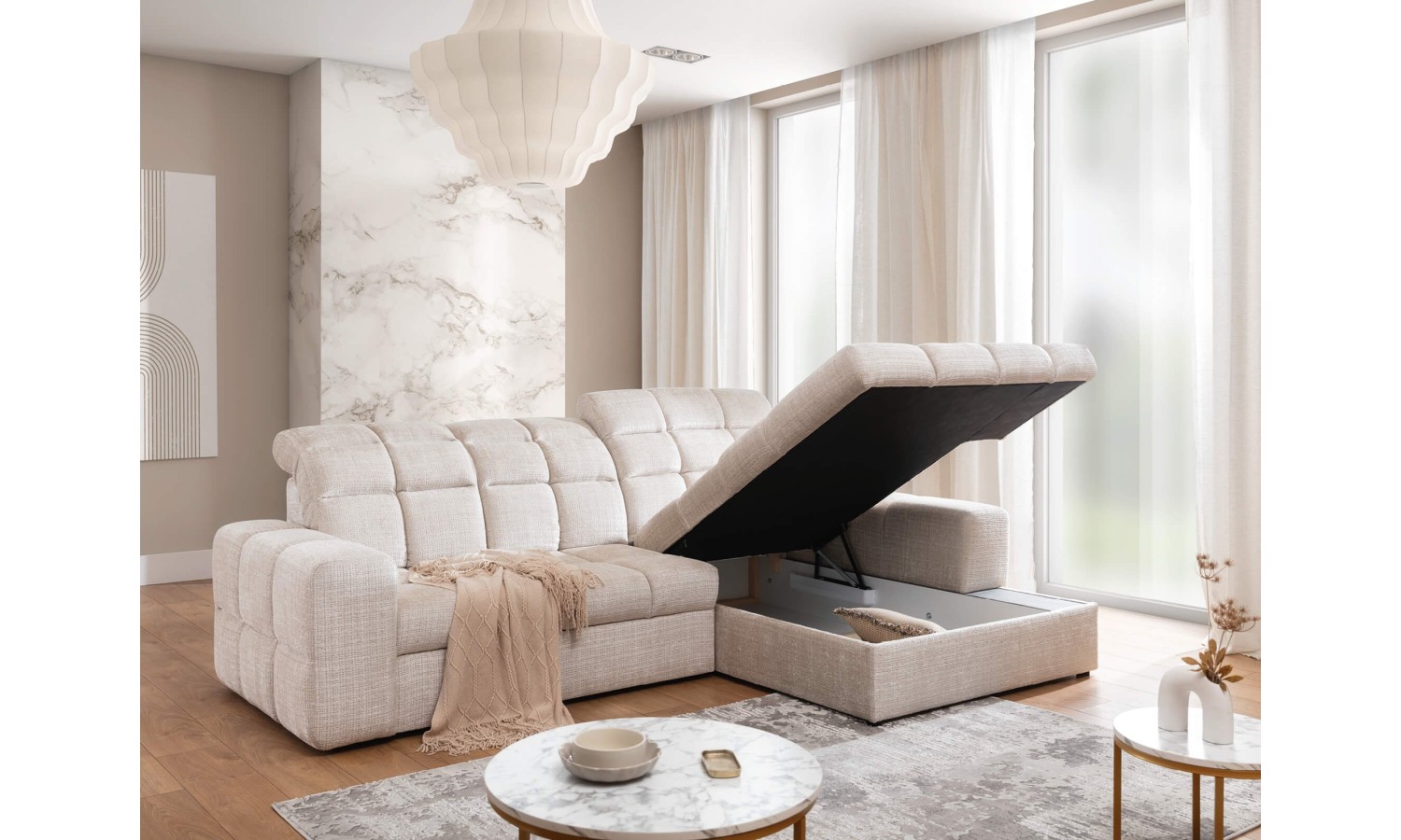- narożnik posiada wysuwaną funkcję spania i pojemnik na pościel