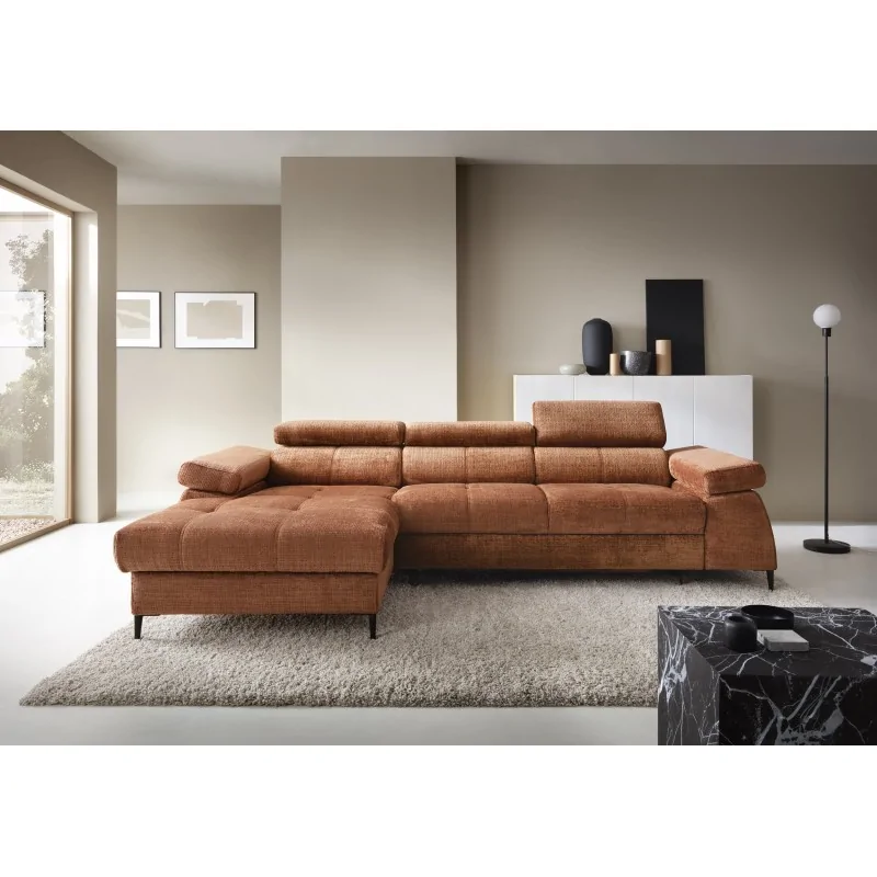 Narożnik Zigner I to elegancki i funkcjonalny mebel, który doskonale sprawdzi się w nowoczesnym wnętrzu. Wykonany w ciepłym odcieniu brązu, narożnik ten posiada regulowane zagłówki, które zapewniają wyjątkowy komfort podczas wypoczynku. Jego szerokość wynosi 283 cm, a głębokość 175 cm, co czyni go idealnym do przestronnych salonów.