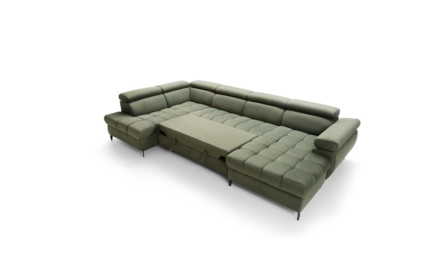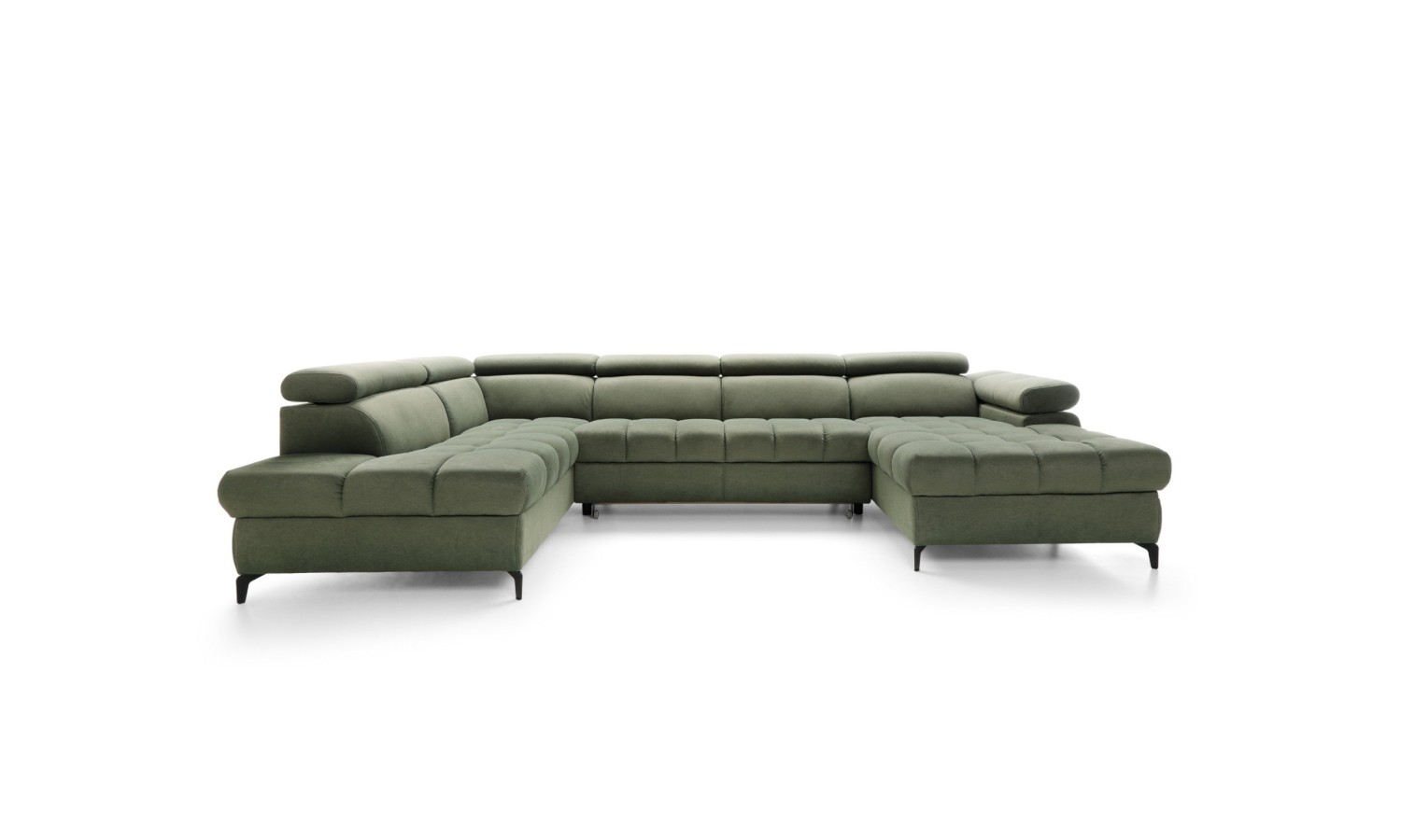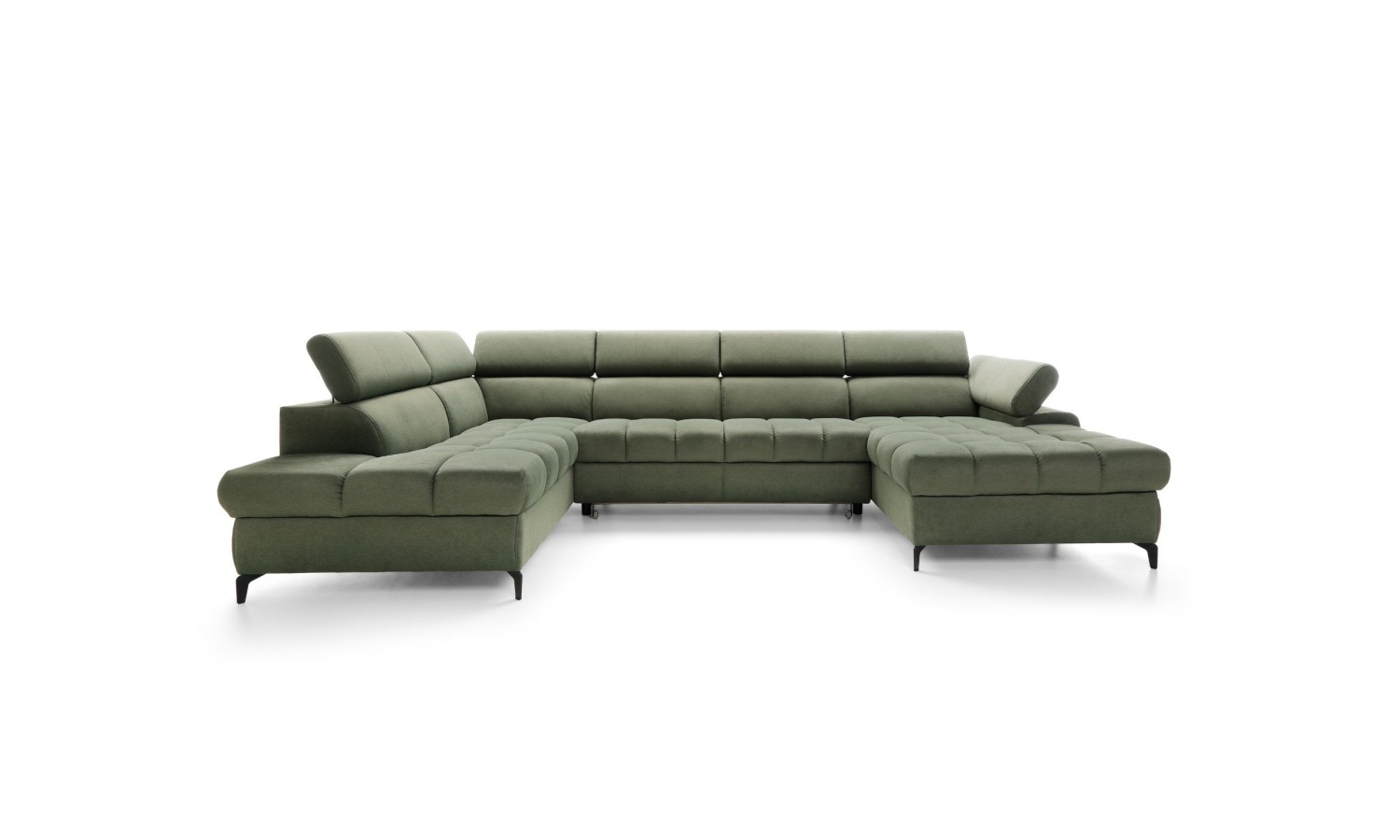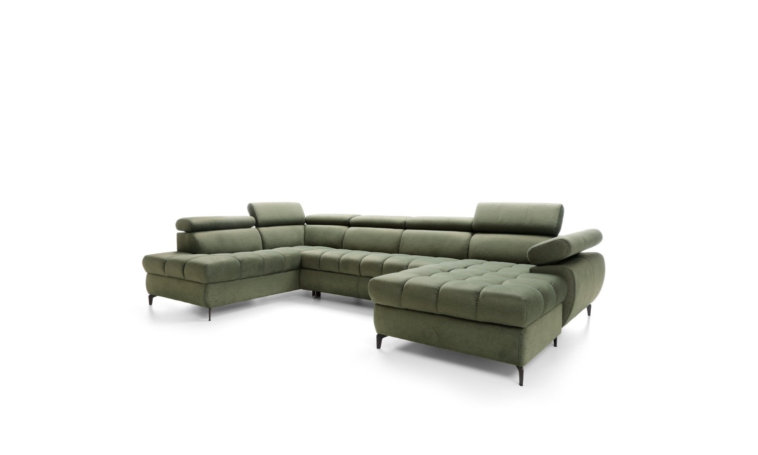 Duży narożnik Lardi 3 to esencja nowoczesnego designu połączonego z najwyższym komfortem użytkowania. Wykonany w eleganckim zielonym odcieniu, narożnik ten wyróżnia się starannymi przeszyciami i miękkimi, zaokrąglonymi liniami, które nadają mu luksusowego wyglądu. Solidny drewniany stelaż oraz subtelne, czarne nóżki zapewniają stabilność i trwałość, jednocześnie dodając lekkości całej konstrukcji. Szeroka gama dostępnych kolorów tkanin, w tym plamoodpornych oraz skór ekologicznych, pozwala na pełne dopasowanie narożnika do każdego wnętrza, spełniając nawet najbardziej wyszukane wymagania estetyczne.