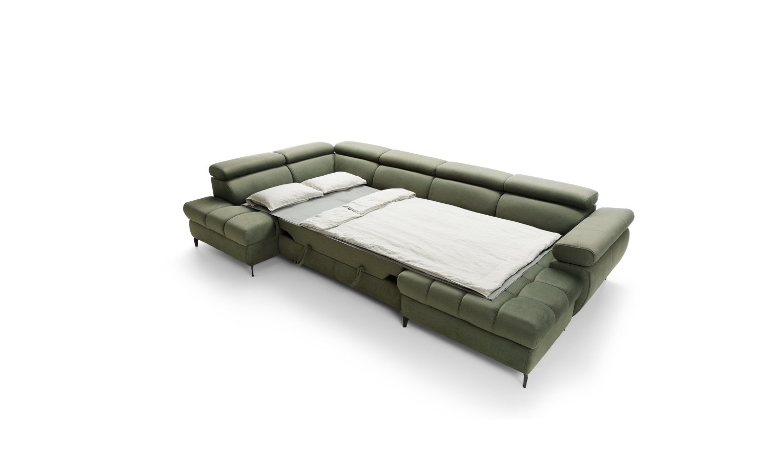⋅ Narożnik jest z funkcją spania i pojemnikiem na pościel ( mechanizm typu delfin )