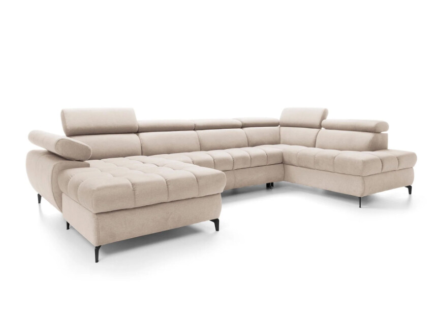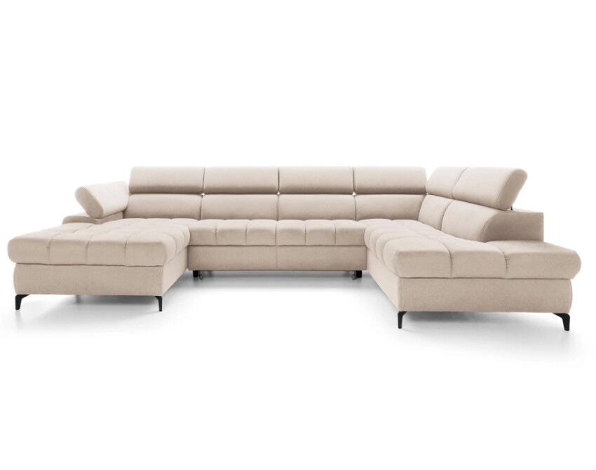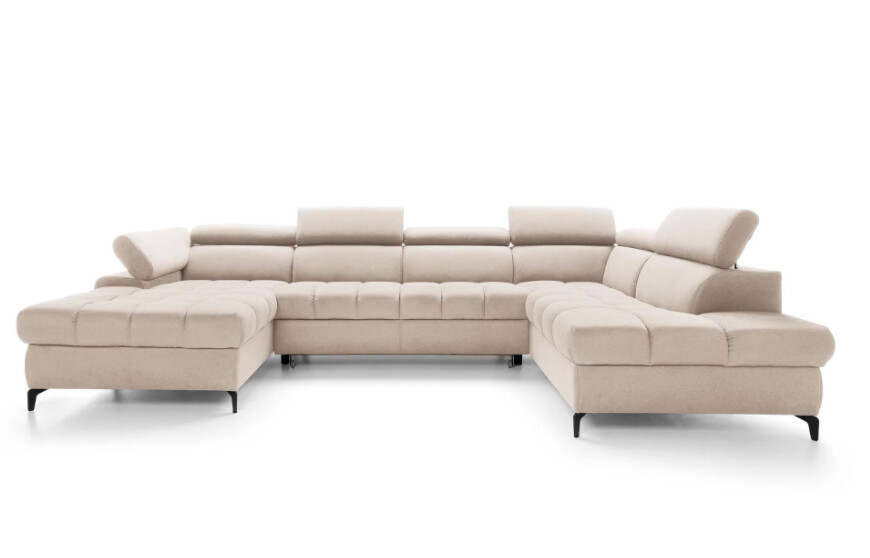 Narożnik Lardi 3 o imponujących wymiarach 202x344x174 cm oferuje przestronną powierzchnię siedzącą, idealną dla dużych rodzin lub osób ceniących sobie wygodę. Jego wysokość regulowana od 77 do 94 cm oraz funkcja spania o powierzchni 268x125 cm sprawiają, że jest to mebel niezwykle funkcjonalny. Mechanizm typu delfin pozwala na łatwe rozłożenie narożnika do spania, a pojemnik na pościel dodaje praktyczności, umożliwiając przechowywanie pościeli w jednym miejscu. Wypełnienie siedziska pianką wysokoelastyczną oraz sprężynami falistymi gwarantuje komfort użytkowania na najwyższym poziomie.