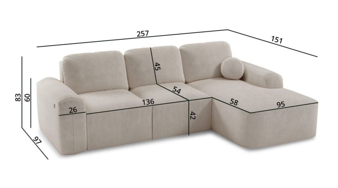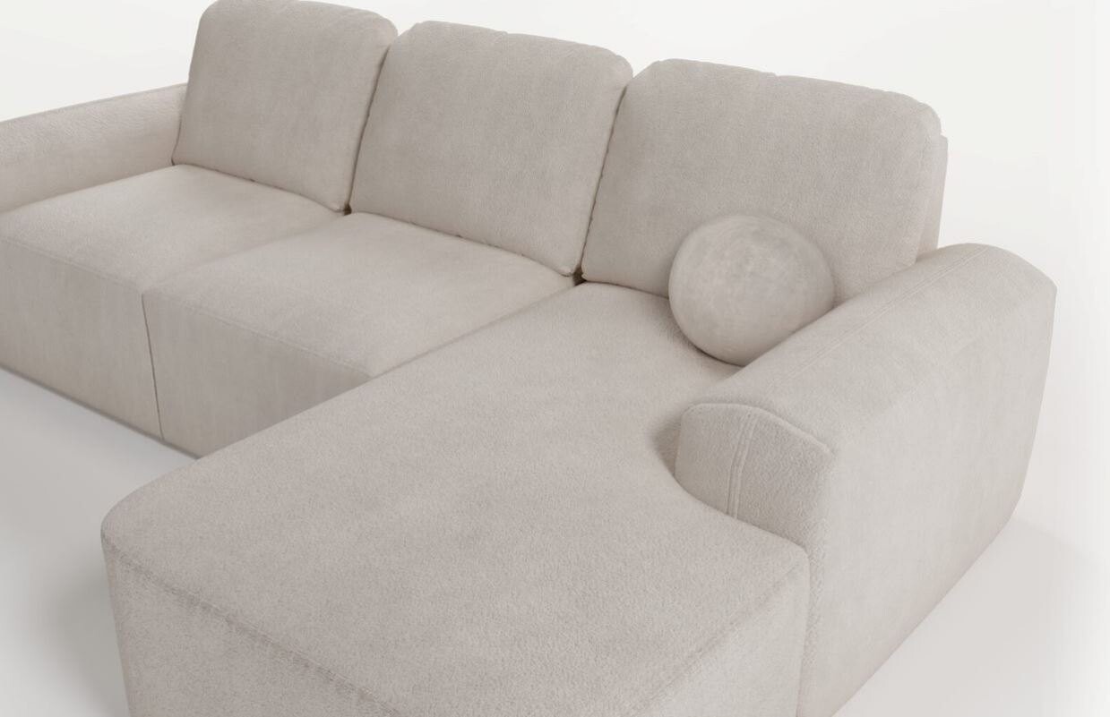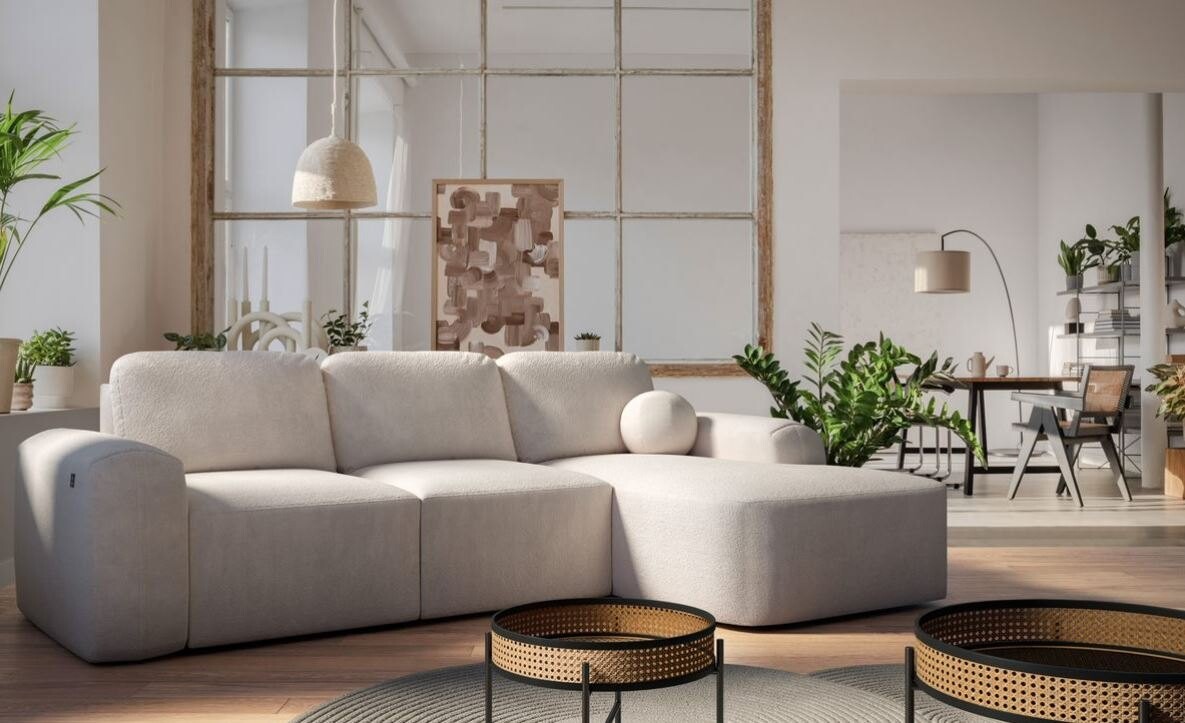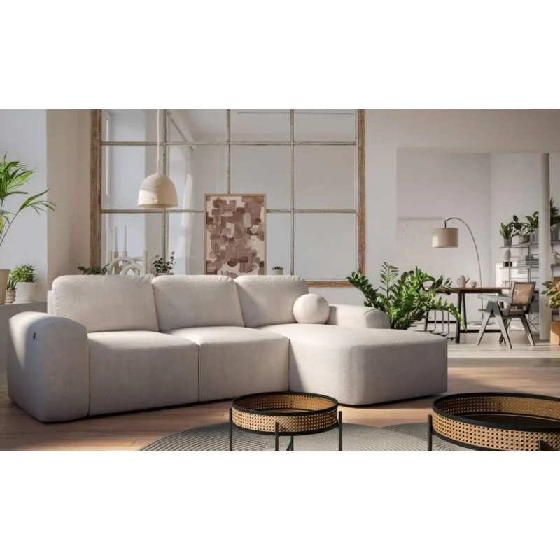 Narożnik Tokio I łączy nowoczesny minimalizm z funkcjonalnością, doskonale wpisując się w estetykę współczesnych wnętrz. Jego subtelnie zaokrąglone kształty i delikatna tkanina nadają wnętrzu przytulności i elegancji. Kompaktowy rozmiar czyni go idealnym rozwiązaniem zarówno do większych, jak i mniejszych przestrzeni, zapewniając maksymalny komfort użytkowania.