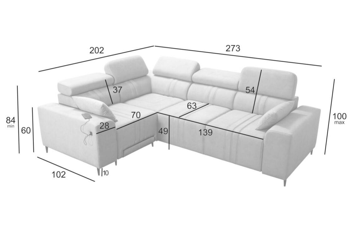 - 1 wysuwany podnóżek (manualny) - istnieje możliwość zamówienia narożnika bez wysuwanego podnóżka
