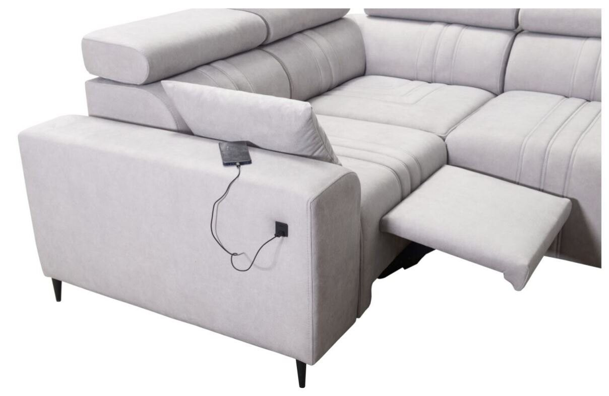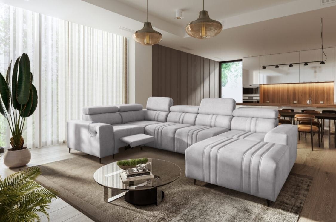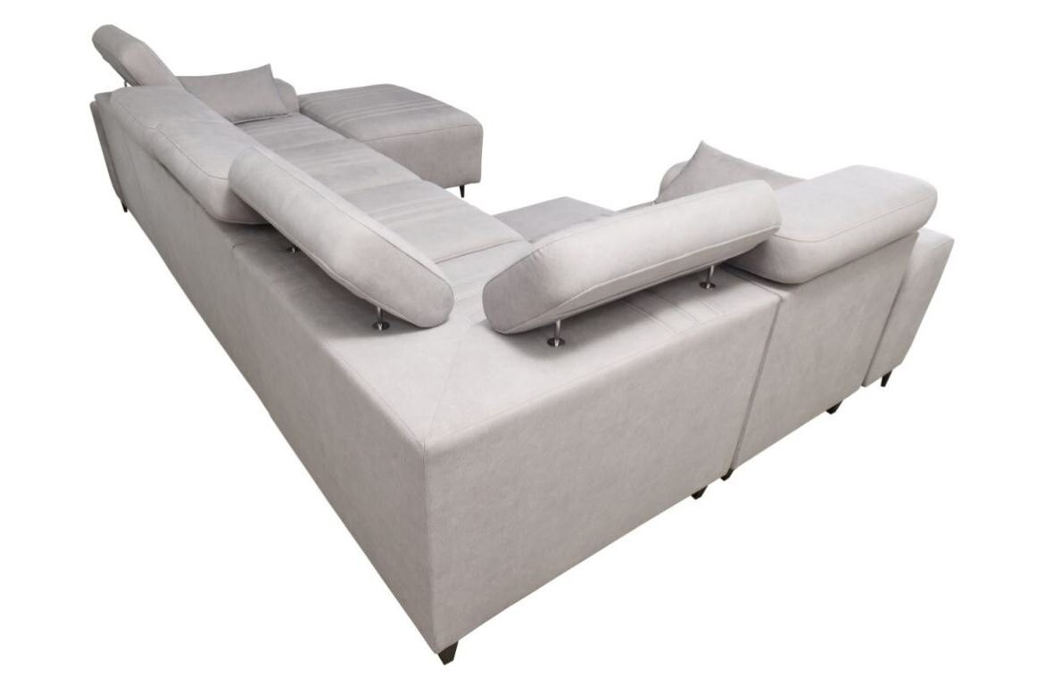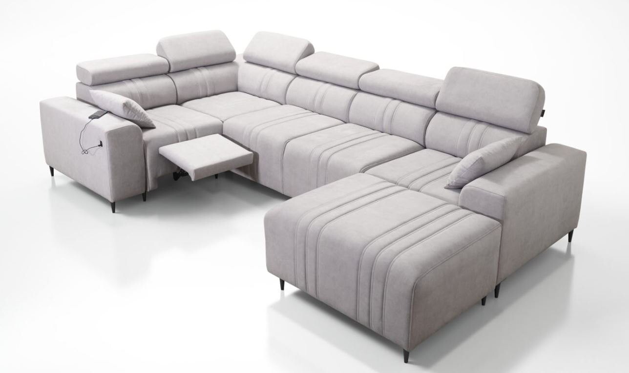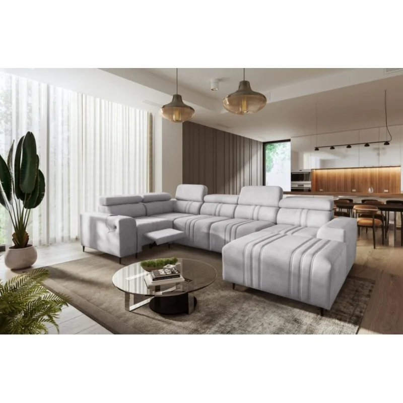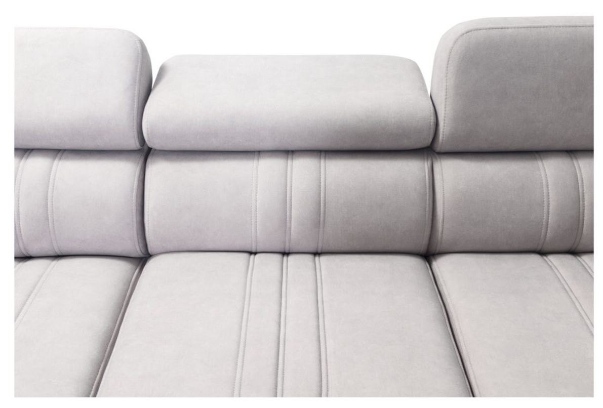 Narożnik Ditro IV MIX to przestronny i nowoczesny mebel, który idealnie łączy estetykę z funkcjonalnością. Eleganckie przeszycia na tapicerce w połączeniu z subtelnym designem sprawiają, że narożnik doskonale wpasuje się w każde wnętrze. Regulowane zagłówki pozwalają na wygodne dopasowanie pozycji podczas relaksu, a bogaty wybór plamoodpornych tkanin o różnorodnych strukturach, takich jak welur czy plecionka, dodaje mu uniwersalności i łatwości w utrzymaniu czystości.