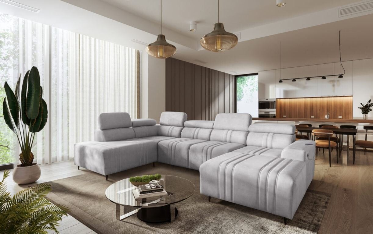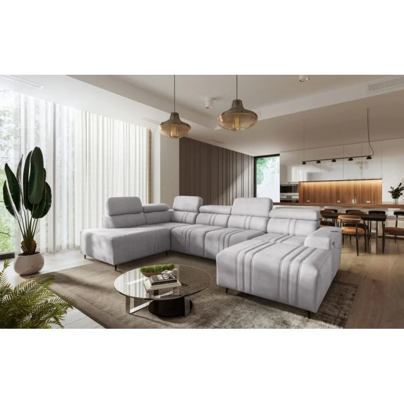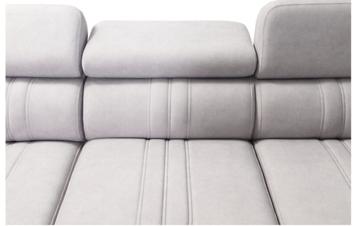 Narożnik Ditro VI to elegancki i funkcjonalny mebel zaprojektowany z myślą o przestronnych wnętrzach. Jego precyzyjne przeszycia, wyważone proporcje i regulowane zagłówki sprawiają, że model doskonale łączy styl z komfortem użytkowania. Plamoodporna tapicerka, dostępna w szerokiej gamie kolorów i struktur, takich jak welur i plecionka, pozwala łatwo dopasować narożnik do każdego wnętrza, jednocześnie ułatwiając jego pielęgnację.