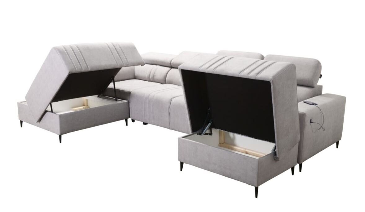Dzięki funkcji spania typu puma narożnik Ditro VI oferuje wygodne miejsce do odpoczynku zarówno w dzień, jak i w nocy. Praktyczny pojemnik na pościel umożliwia przechowywanie dodatkowych tekstyliów, a w zestawie znajdują się dwie formatki wyrównujące powierzchnię spania, które zapewniają komfortowy i równy sen. Dodatkowo, możliwość wyboru nóżek – czarnych, złotych, drewnianych lub chromowanych – pozwala na pełną personalizację mebla.