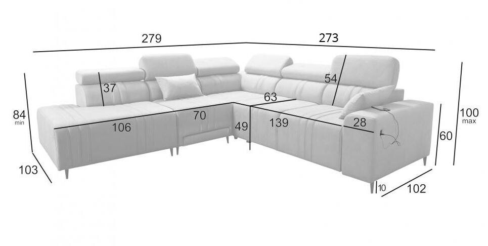 - Narożnik DITRO MIX X 279x340x183 cm