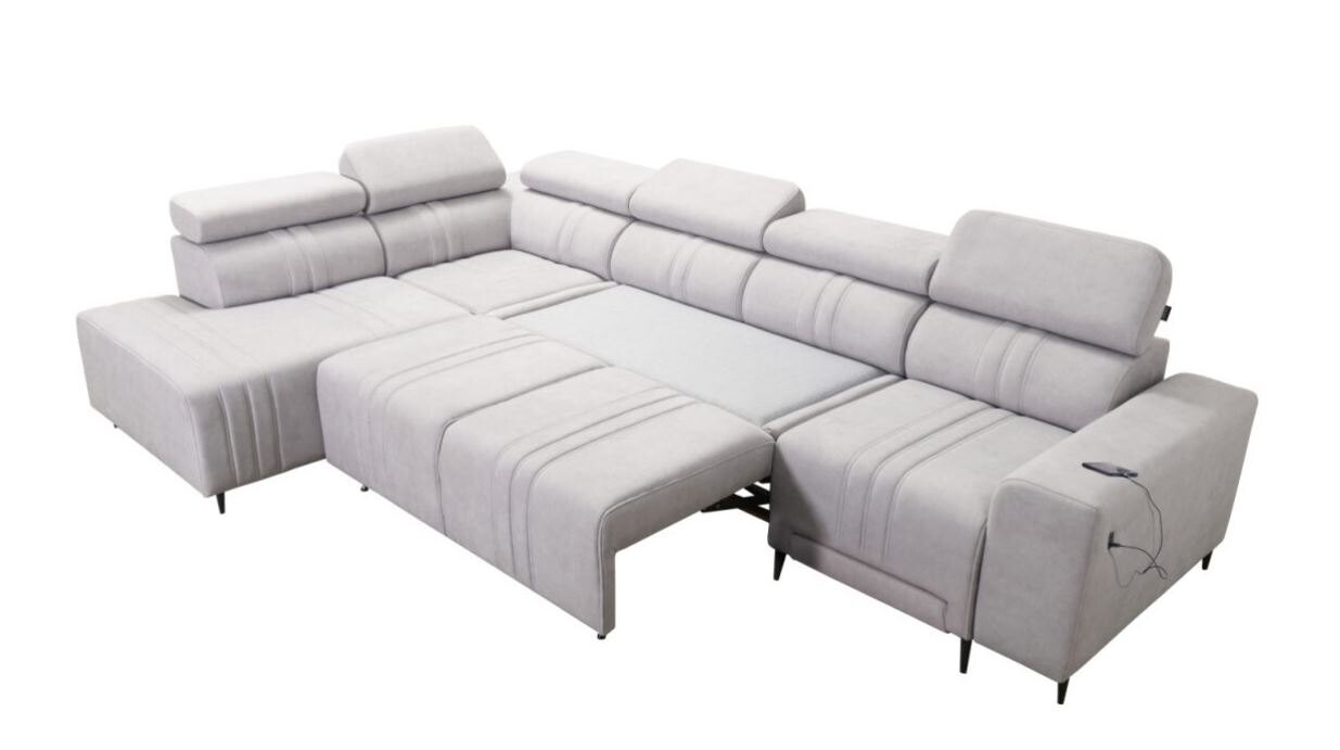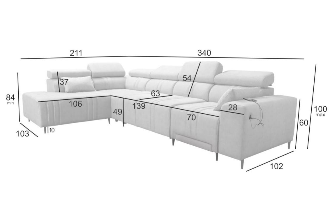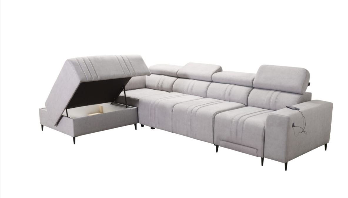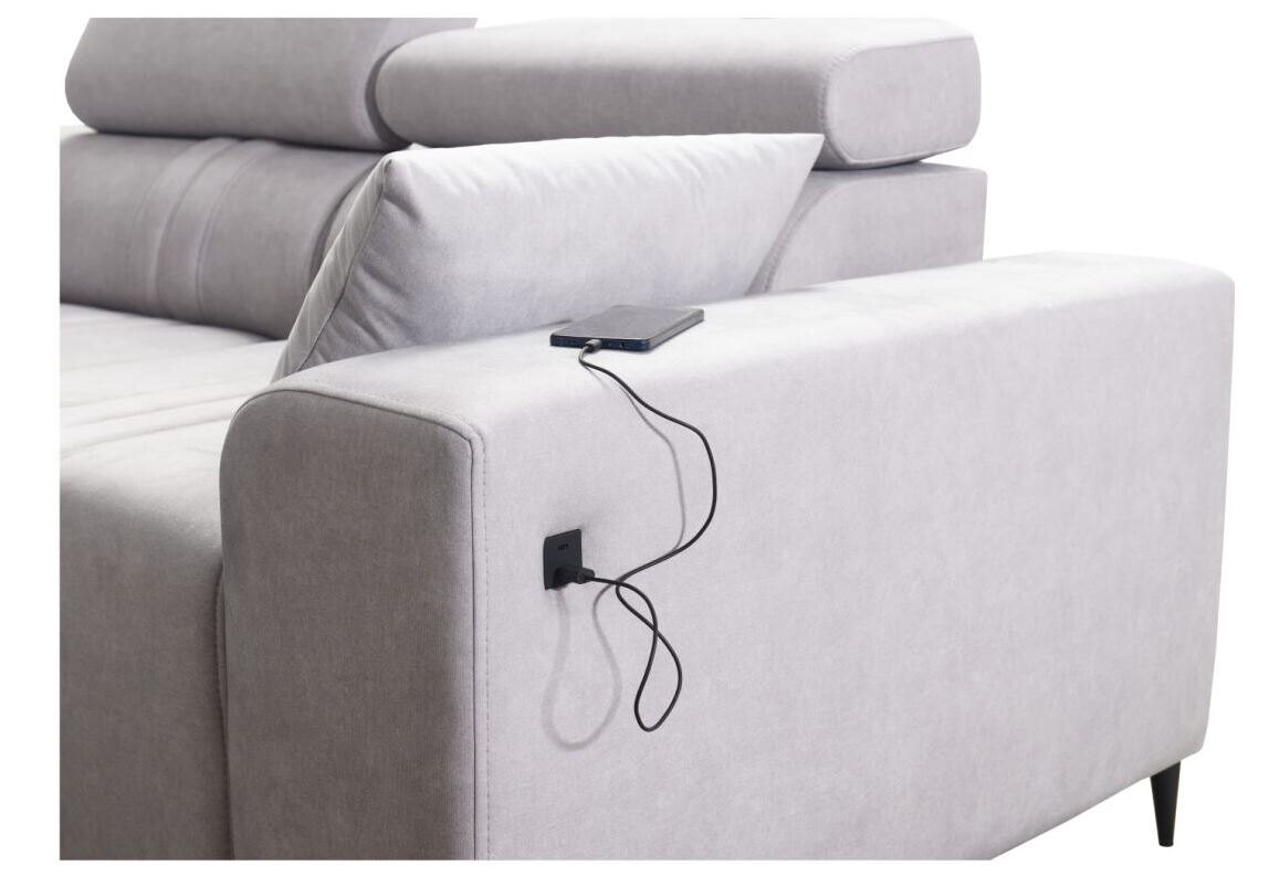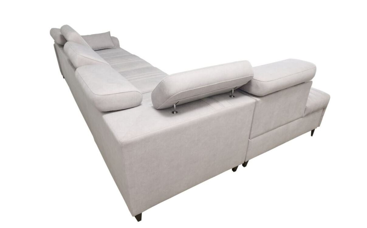Model ten został wyposażony w funkcję spania typu puma, co czyni go praktycznym rozwiązaniem zarówno do relaksu, jak i nocnego wypoczynku. Wysuwany podnóżek, obsługiwany manualnie, podnosi poziom komfortu, a przestronny pojemnik na pościel umożliwia przechowywanie dodatkowych tekstyliów. W zestawie znajdują się formatki wyrównujące powierzchnię spania, które pozwalają na równy i wygodny sen. Możliwość wyboru nóżek – czarnych, złotych, drewnianych lub chromowanych – pozwala na personalizację narożnika zgodnie z indywidualnym stylem wnętrza.