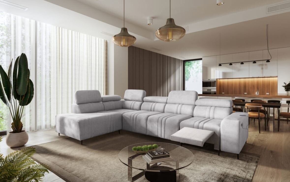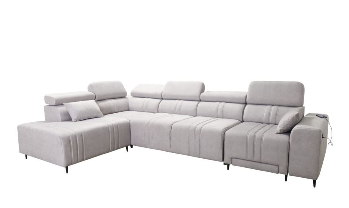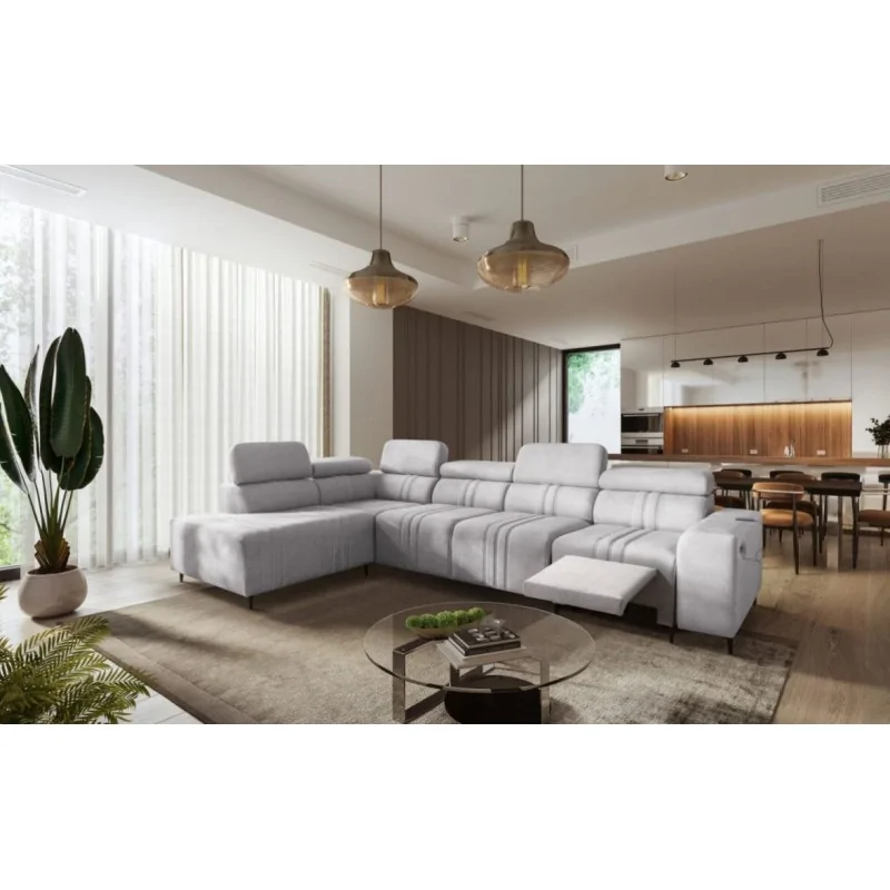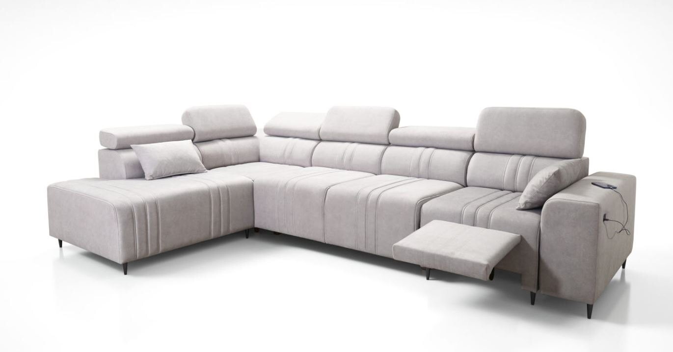 Narożnik Ditro XI MIX to stylowy i przestronny mebel, który zachwyca swoim nowoczesnym designem i funkcjonalnością. Precyzyjne przeszycia oraz regulowane zagłówki nadają mu elegancji i podnoszą komfort codziennego użytkowania. Plamoodporne tkaniny o różnych strukturach, takich jak welur czy plecionka, dostępne w szerokiej gamie kolorystycznej, ułatwiają utrzymanie narożnika w nienagannym stanie.