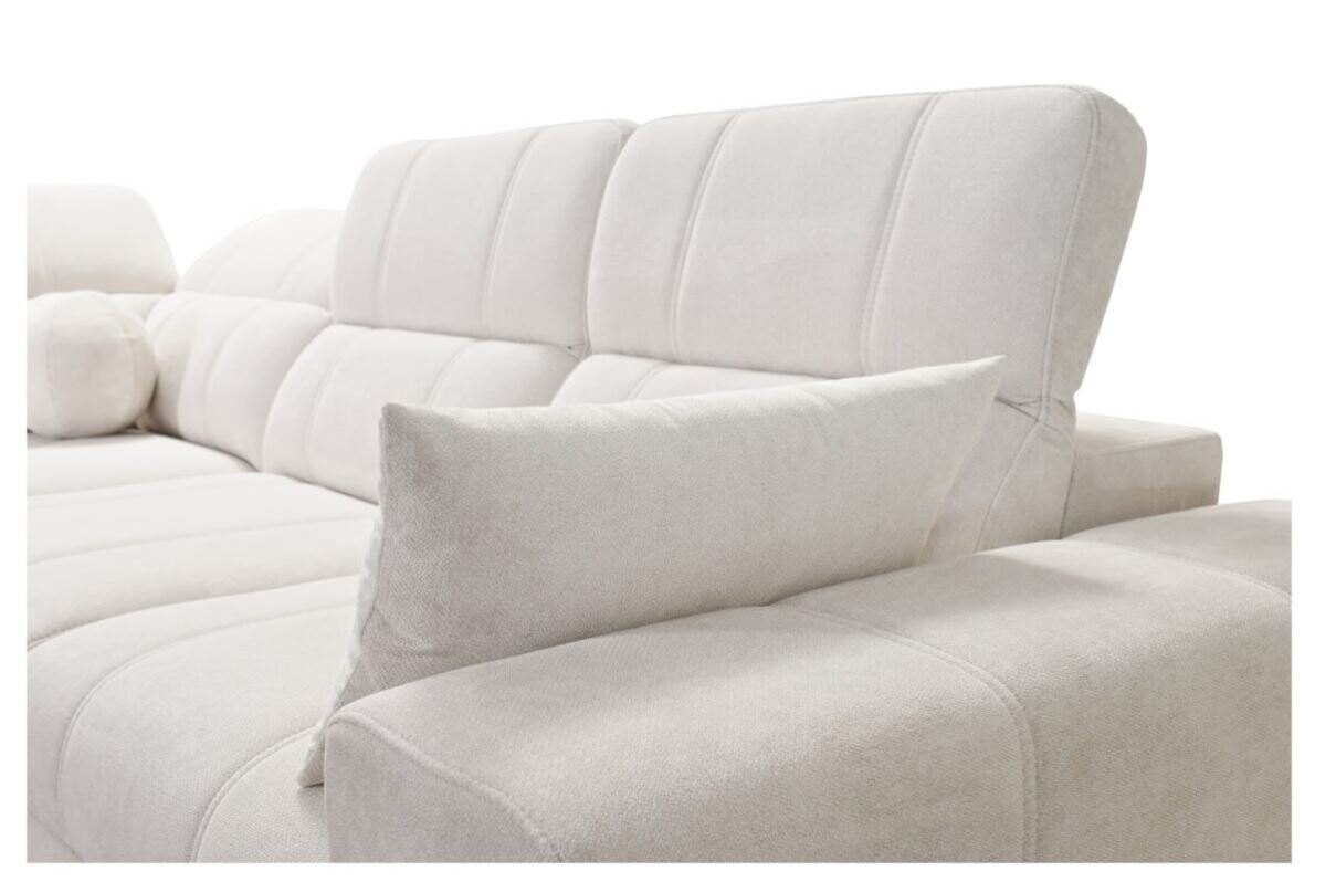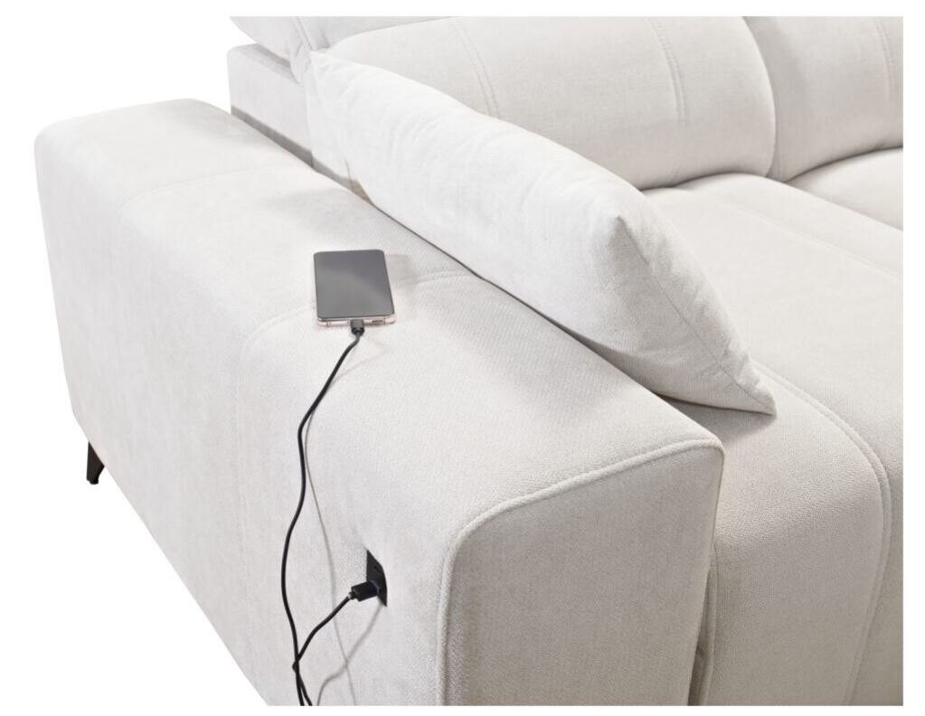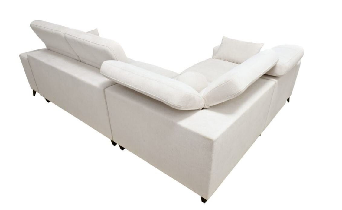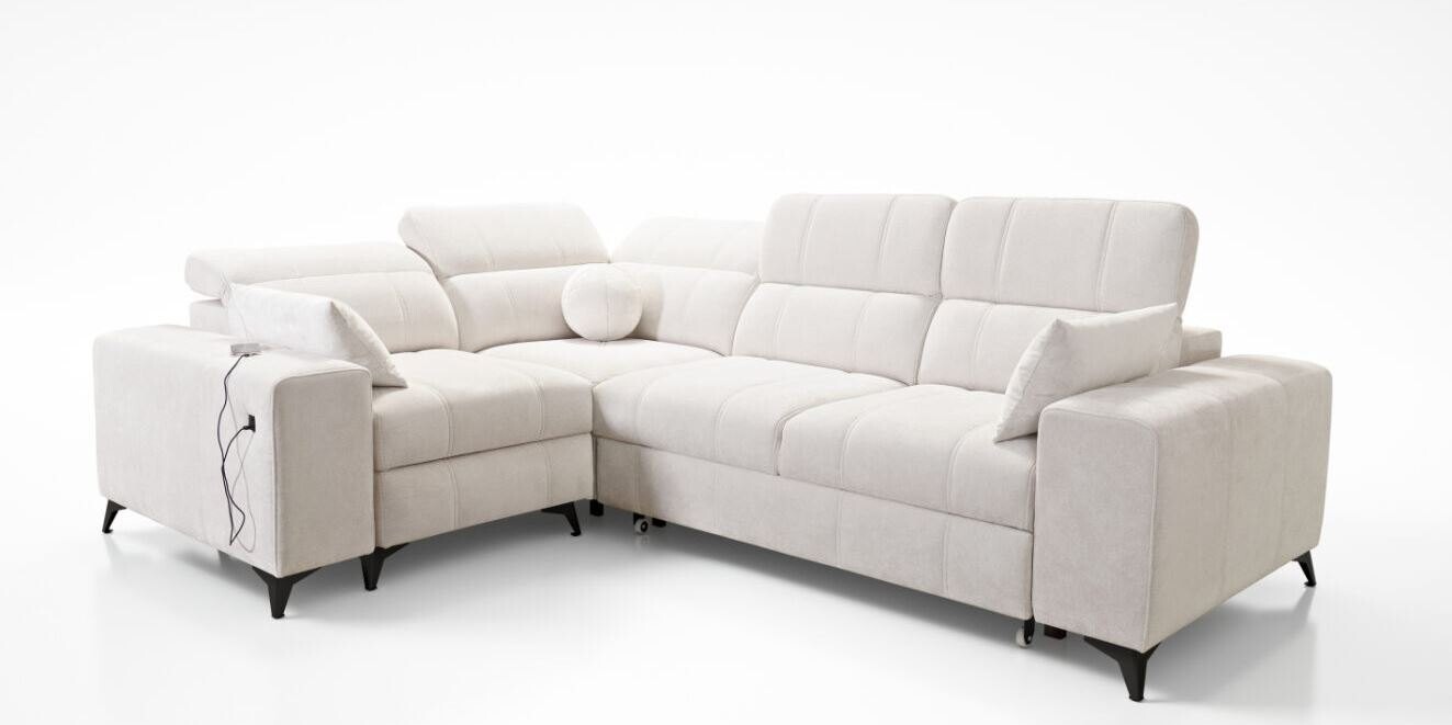Wyposażony w funkcję relaksu, narożnik oferuje wyjątkowy komfort dzięki systemowi sterowania podnóżkiem za pomocą przycisków. Siedzisko wykonane na bazie sprężyn falistych i pianki T30 zapewnia idealne podparcie dla kręgosłupa. Dzięki funkcji spania typu delfin, mebel w łatwy sposób przekształca się w wygodne łóżko. Stelaż z drewna i płyty gwarantuje trwałość, a opcjonalne doposażenie w piankę HR 35 lub materac wyrównujący sprawia, że można dopasować narożnik do indywidualnych potrzeb.