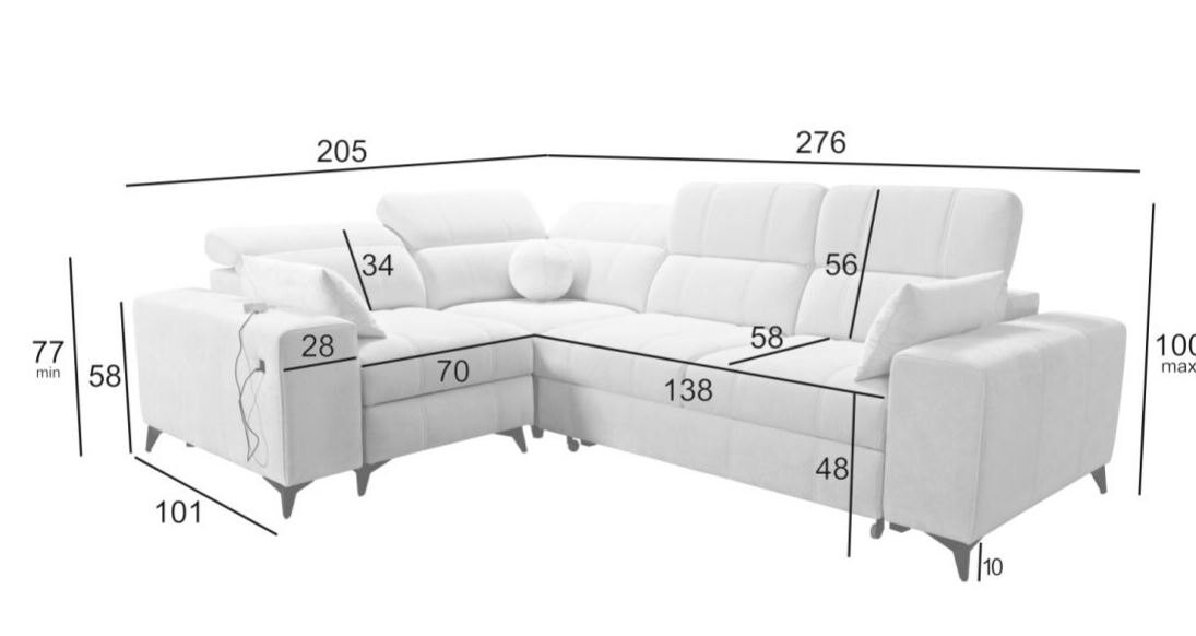 - Kolorystyka oraz struktura powierzchni spania wybierana jest losowo. Istnieje możliwość wykonania powierzchni spania w tkaninie takiej, jak na całym narożniku, za dopłatą +120 zł