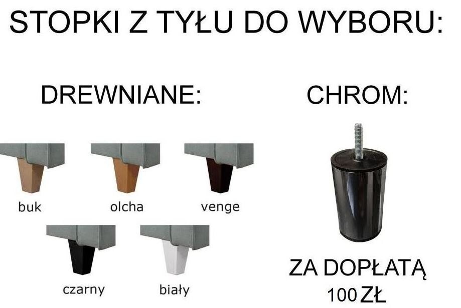 - Nóżki z przodu do wyboru (czarne lub złote) nóżki z tyłu drewniane lub chromowane (chromowane za dopłatą +100 zł)