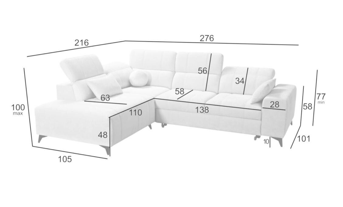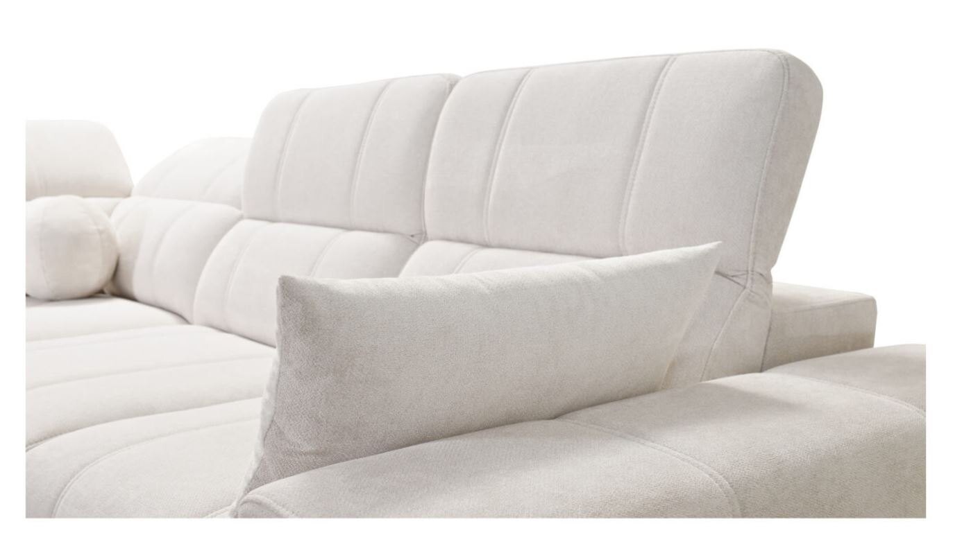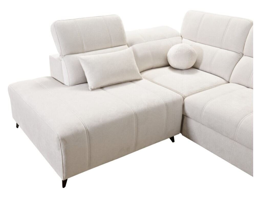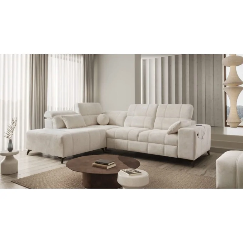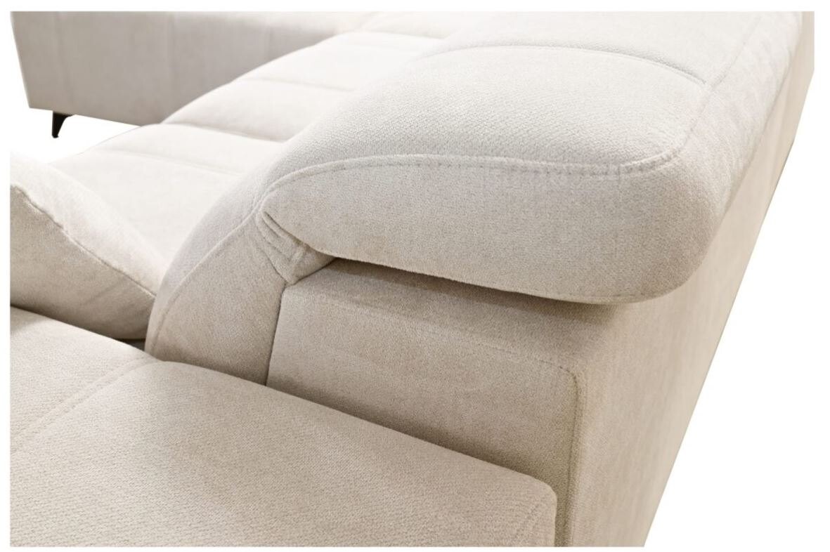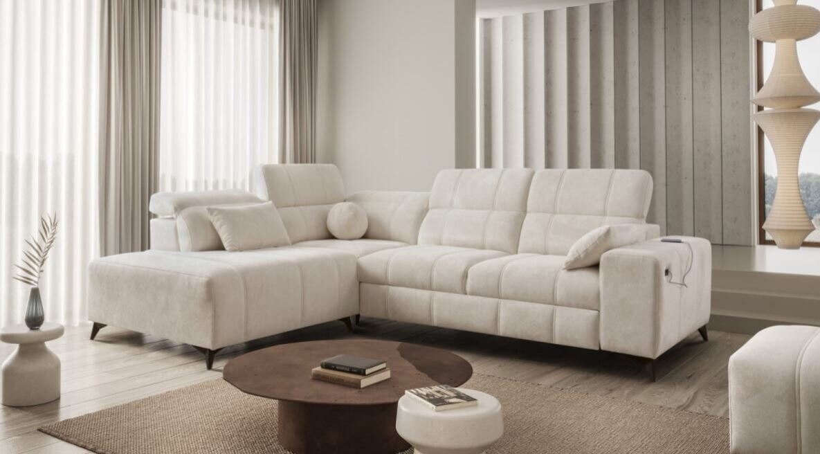 Narożnik Kombo VII 276x216 cm łączy w sobie minimalistyczny design z wysoką funkcjonalnością, doskonale wpisując się w potrzeby współczesnych wnętrz. Jego subtelne pikowania oraz miękka, wysokiej jakości tapicerka sprawiają, że mebel wygląda nowocześnie i stylowo. Regulowane zagłówki pozwalają na dopasowanie wysokości, gwarantując wygodę podczas odpoczynku. Kompaktowe wymiary czynią ten narożnik idealnym wyborem zarówno do przestronnych, jak i średnich salonów.