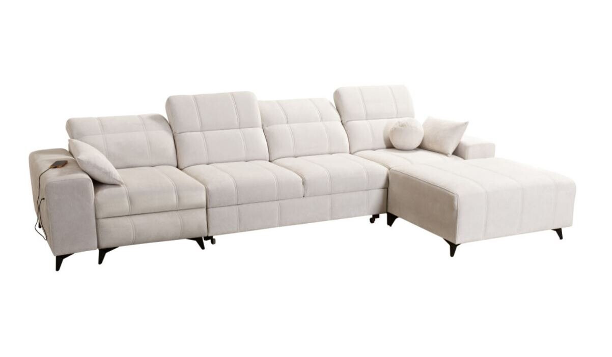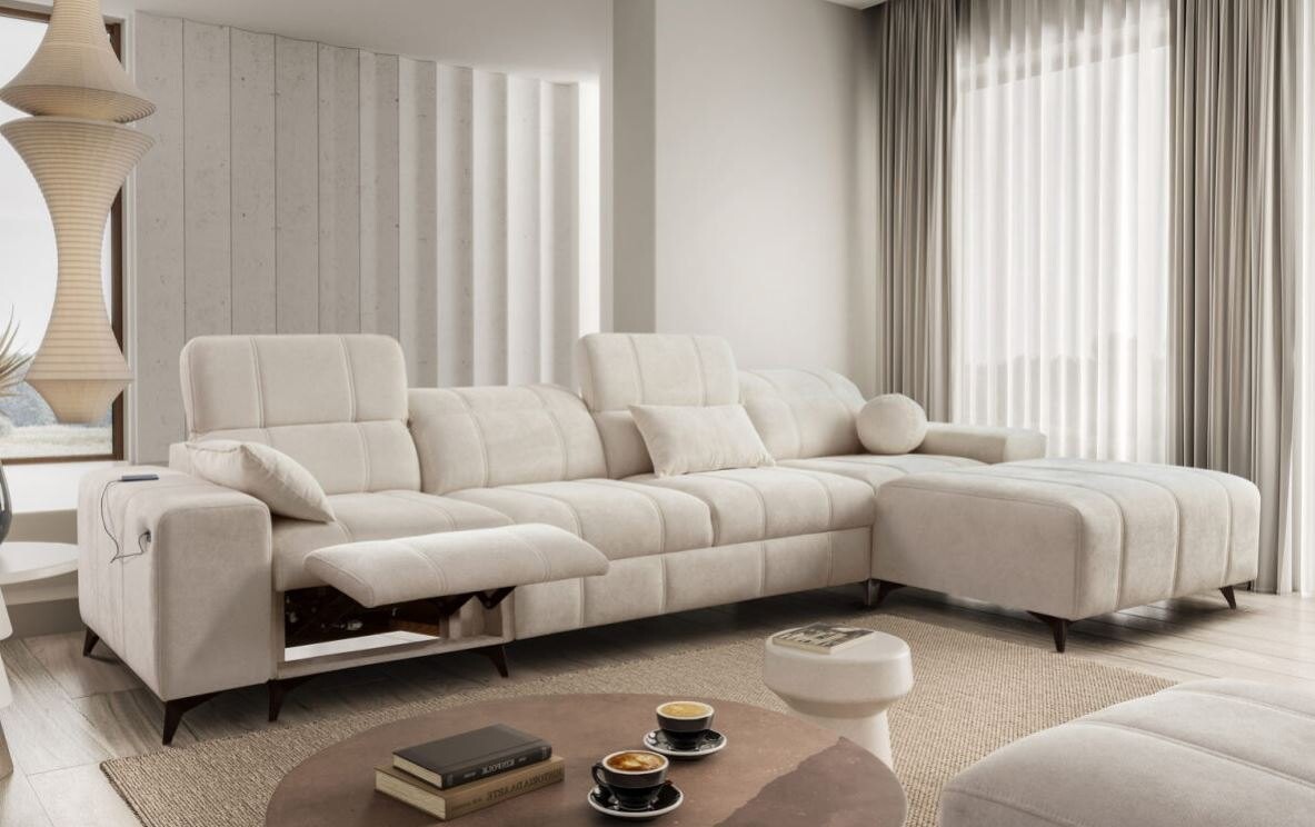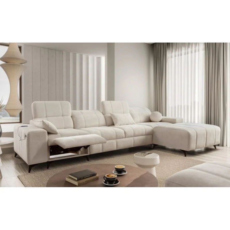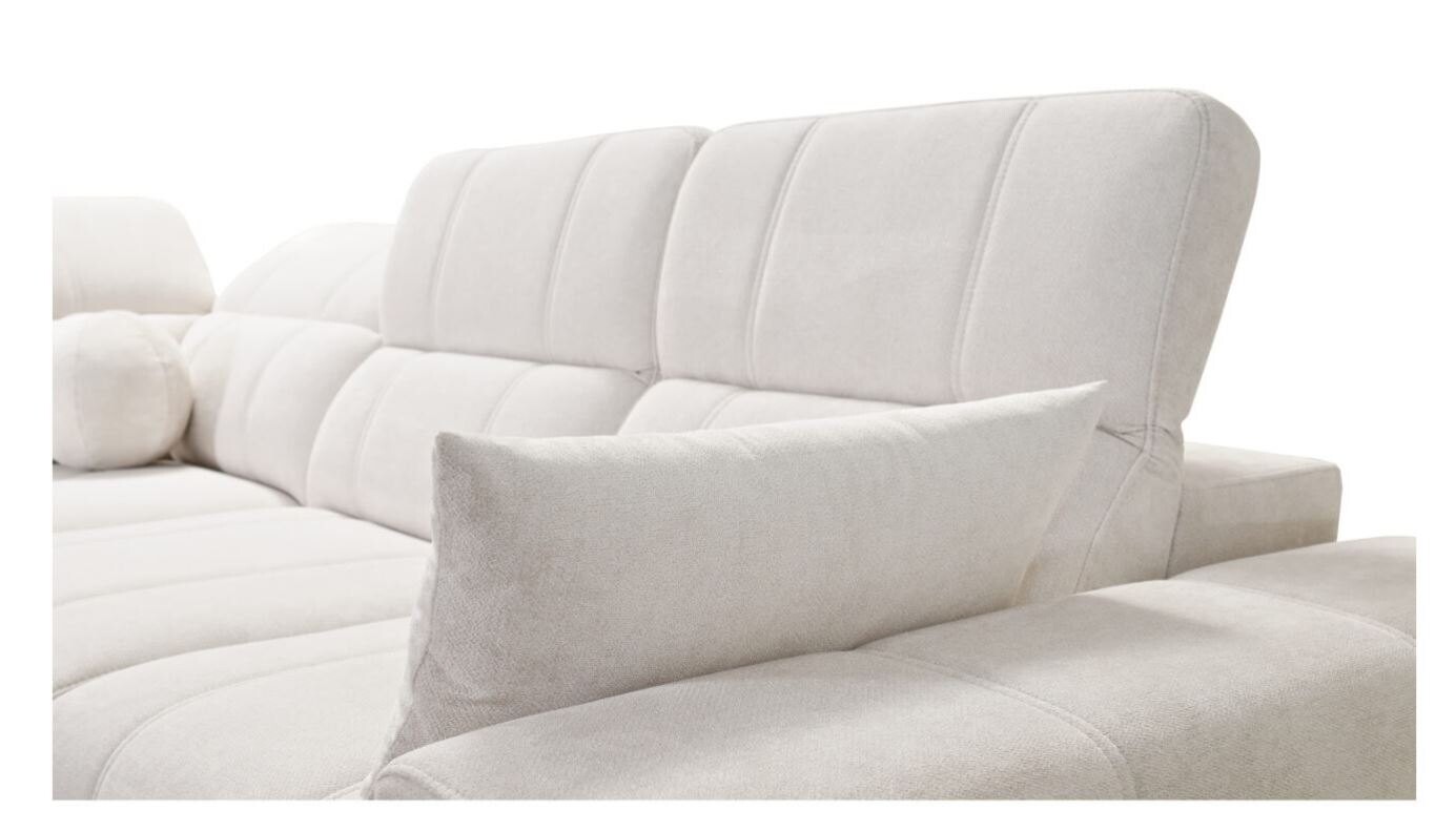 Narożnik Kombo XII MIX 336x184 cm to połączenie funkcjonalności i elegancji, które doskonale sprawdzi się w większych przestrzeniach. Jego harmonijny design z wyraźnymi pikowaniami i miękkimi liniami dodaje wnętrzu nowoczesnego charakteru. Regulowane zagłówki pozwalają dostosować oparcie do indywidualnych preferencji, zapewniając idealne podparcie podczas relaksu. Funkcja relaks podnóżka, wysuwana za pomocą przycisków, zwiększa komfort użytkowania.