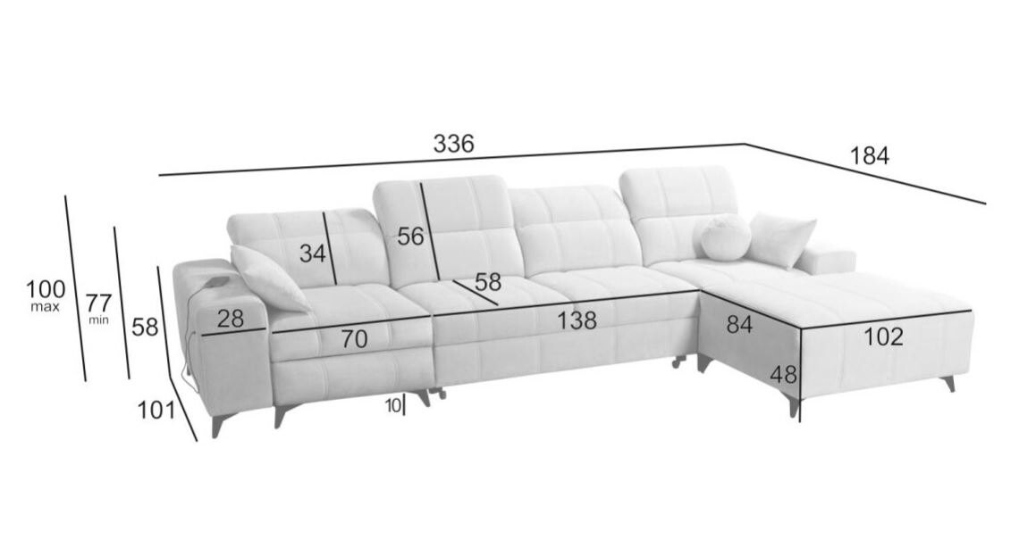 Duży narożnik Kombo XII MIX 336x184 cm - z funkcją spania i funkcją relaks oraz z pojemnikiem