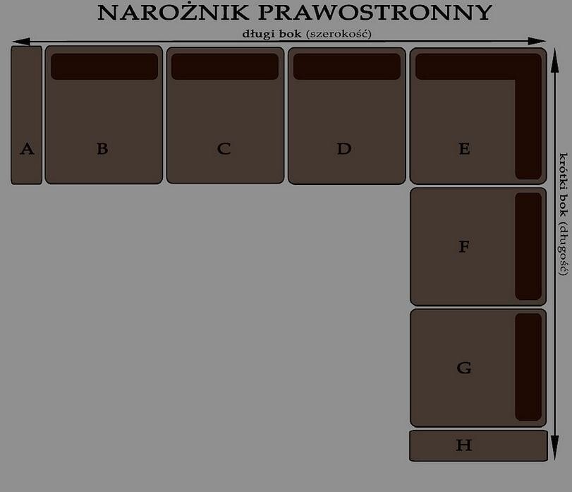 Konfiguracja narożnika w standardowych wymiarach:
