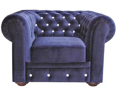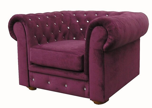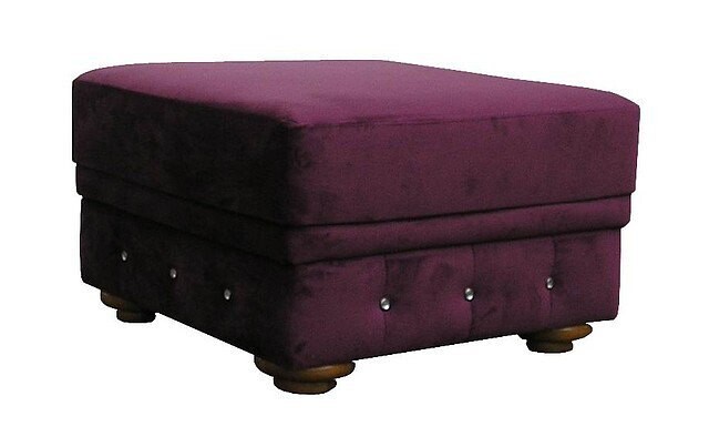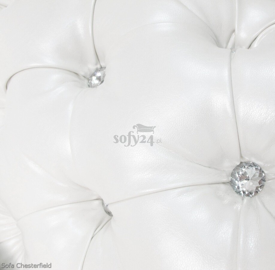 Pufa z kryształkami Chesterfield jest wytwornym meblem o wyjątkowych walorach dekoracyjnych, wyróżniającym się zarówno efektowną tapicerką, jak i sposobem wykończenia. Mebel skonstruowany został na planie kwadratu, dzięki czemu zachowuje geometryczną regularność, doskonale reprezentując się w każdym wnętrzu. Styl modelu jest idealnie dopasowany do foteli i sof, tworząc z nimi jednolitą całość. Pufa może też być samodzielnym elementem wystroju, świetnie uzupełniając toaletkę lub garderobę. Design modelu odzwierciedla typowe cechy stylu Chesterfield stworzonego w Wielkiej Brytanii na przełomie XIX i XX wieku. Do specyficznych cech zalicza się charakterystyczne, głębokie pikowanie dolnej części konstrukcji, udekorowane błyszczącymi kryształkami, które efektownie kontrastują z ciemnoczerwoną tapicerką. To połączenie nabiera znamion królewskiej szlachetności. Pufa nie jest wysoka, a jej konstrukcję umieszczono na bardzo niskich, przysadzistych, toczonych nogach. Taka konstrukcja sprawia, że siedzisko wydaje się jeszcze większe niż w rzeczywistości. Zasadniczą poduszkę oddziela od tapicerowanego stelaża niewielki wałeczek, stanowiący element przejściowy pomiędzy węższą konstrukcją podstawy i szerszym siedziskiem. Pufa z kryształkami Chesterfield to mebel bardzo elegancki szczególnie w zestawieniu z podobnymi fotelami lub kanapą.