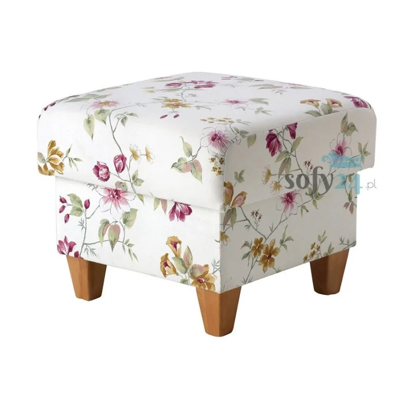 Pufa w stylu angielskim Magnolia jest praktycznym i zarazem bardzo atrakcyjnym wizualnie elementem wyposażenia wnętrz, zapewniającym dodatkowe miejsce do siedzenia. To idealne siedzisko przed damską toaletkę lub do sypialni, w której niezbędne jest miejsce siedzące podczas zmiany garderoby. Pufa wykonana z designie wyraźnie podkreślającym styl angielski będzie też świetnym dopełnieniem stylowego saloniku z kompletem wypoczynkowym. Mebel charakteryzuje się prostą formą opartą na planie kwadratu, a tę regularność podkreśla solidny stelaż drewniany, ciasno obciągnięty tkaniną tapicerską. Dopełnieniem stelaża są drewniane nogi o charakterystycznym dla mebli angielskich profilu czworokątnych belek, lekko wyszczuplonych ku podłodze. O komforcie pufy decyduje umieszczona na stelażu poduszka, której górne krawędzie zostały łagodnie wyokrąglone, pozbawiając tym samym mebel kanciastości i zwiększając wygodę wypoczynku. Siedzisko wykończone jest jasną tapicerką z delikatnym, kwiatowym wzorem, który dodaje całości wdzięku i kobiecej subtelności. Pufa w stylu angielskim Magnolia z uwagi na swoje rozmiary i efektowny design będzie prawdziwą perełką w kobiecym buduarze, wprowadzając do niego element naturalności i wdzięku. Nowoczesne materiały i staranne wykończenie zapewnią jej piękny wygląd na bardzo długo.